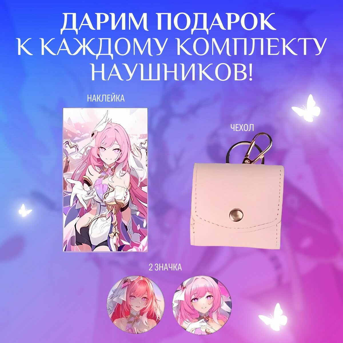 СохранитьНаушники беспроводные со встроенным микрофоном Bluetooth Honkai Impact Хонкай Импакт Элизия с сенсорным управлением, блютуз гарнитура для телефона и компьютера, подарок детям интересное: