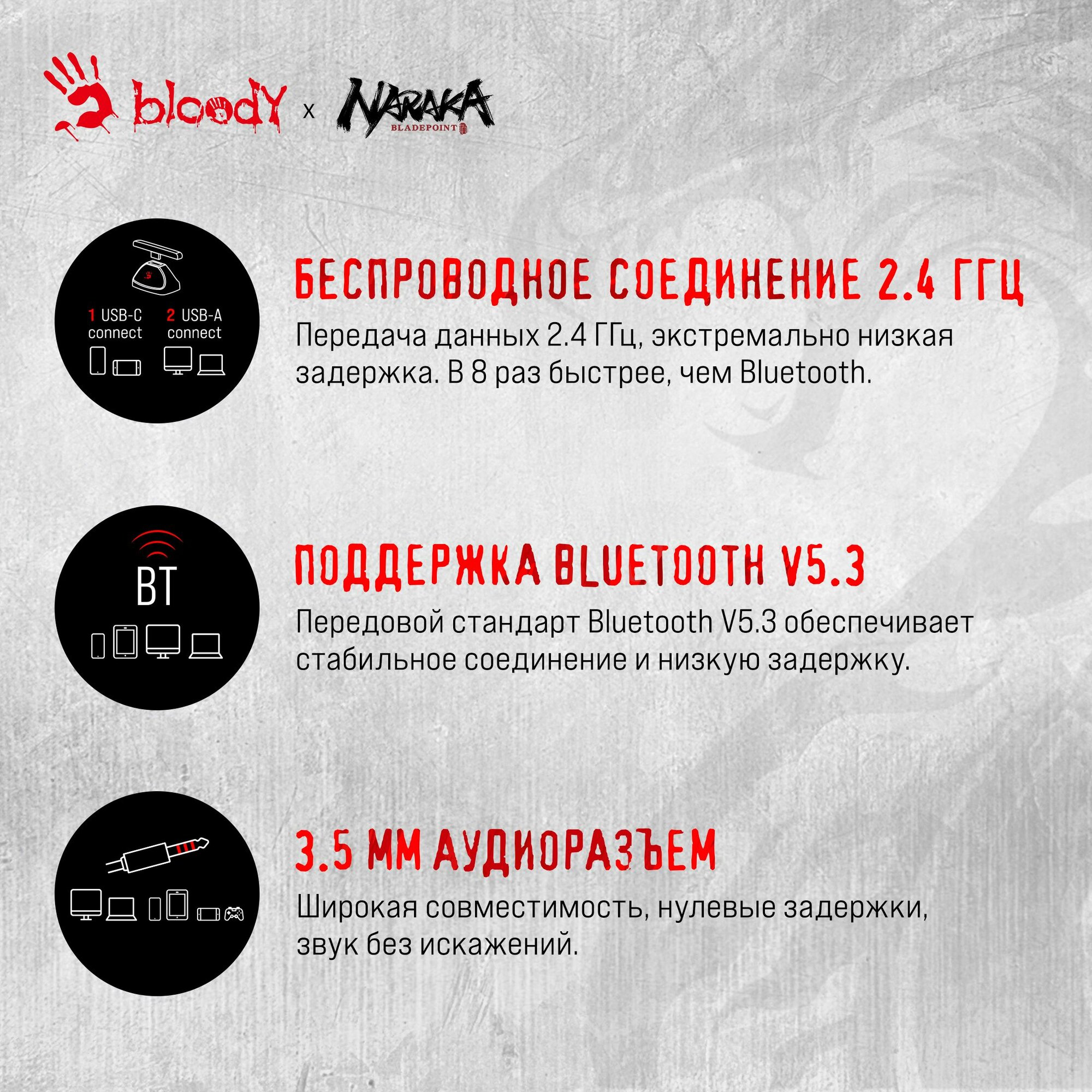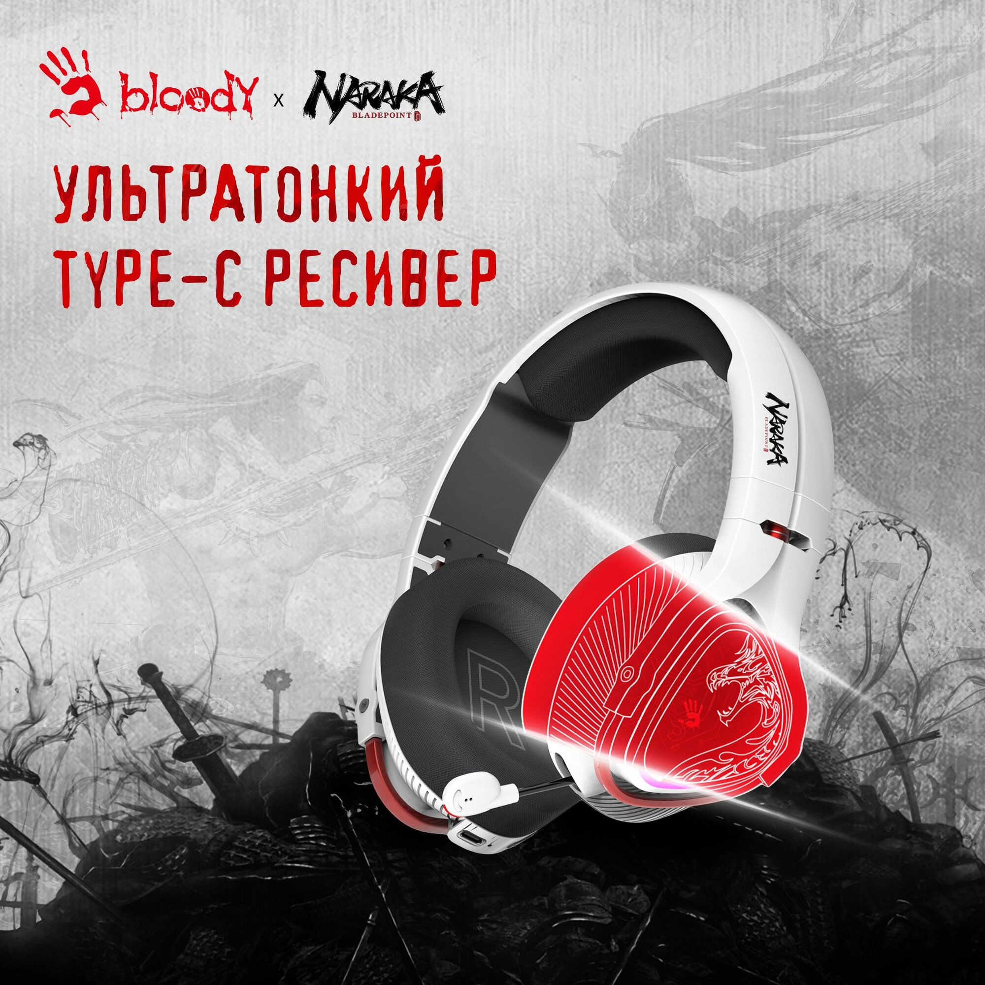 Наушники игровые A4Tech Bloody MR720 Naraka, белый/красный, мониторные, беспроводные bluetooth/радио интересное: