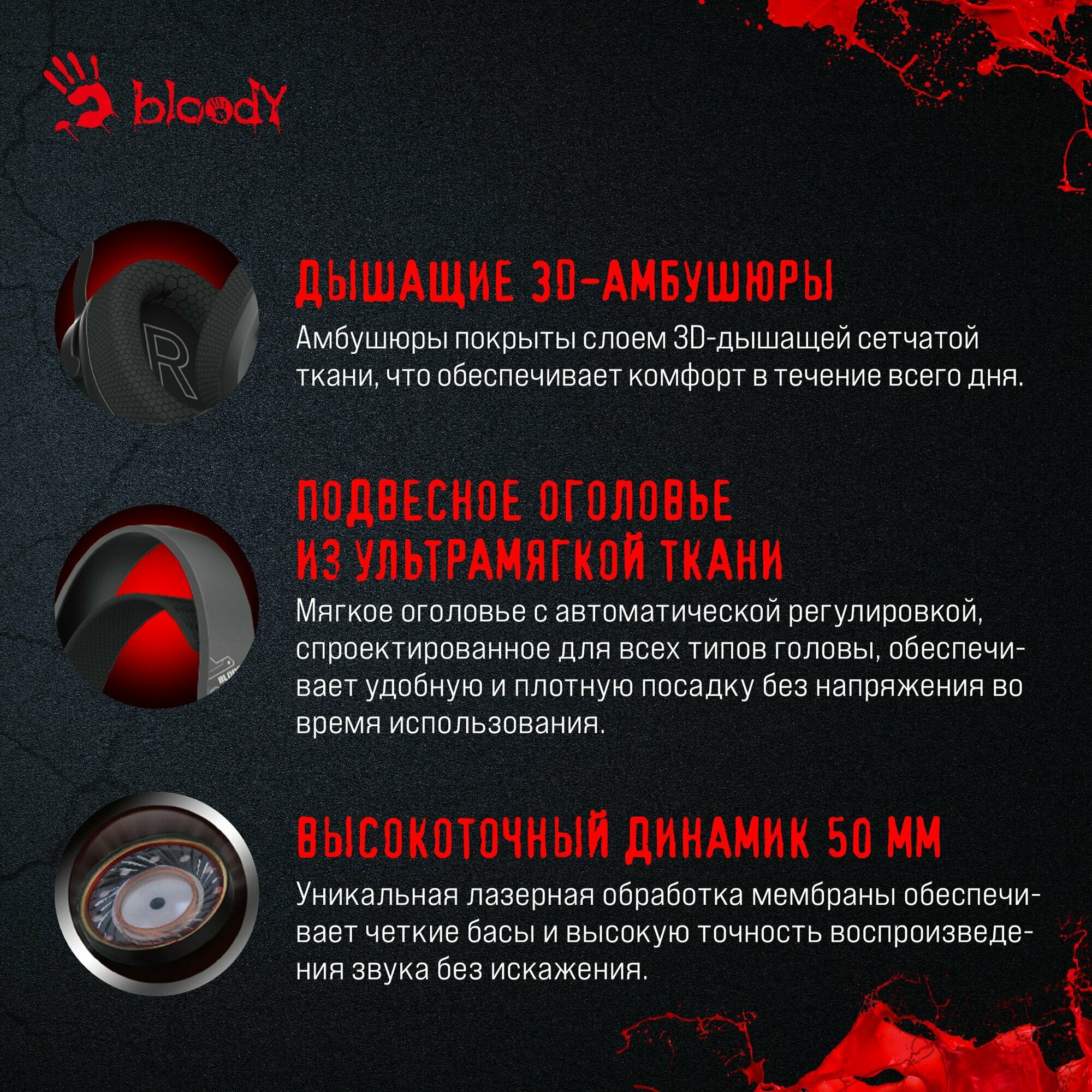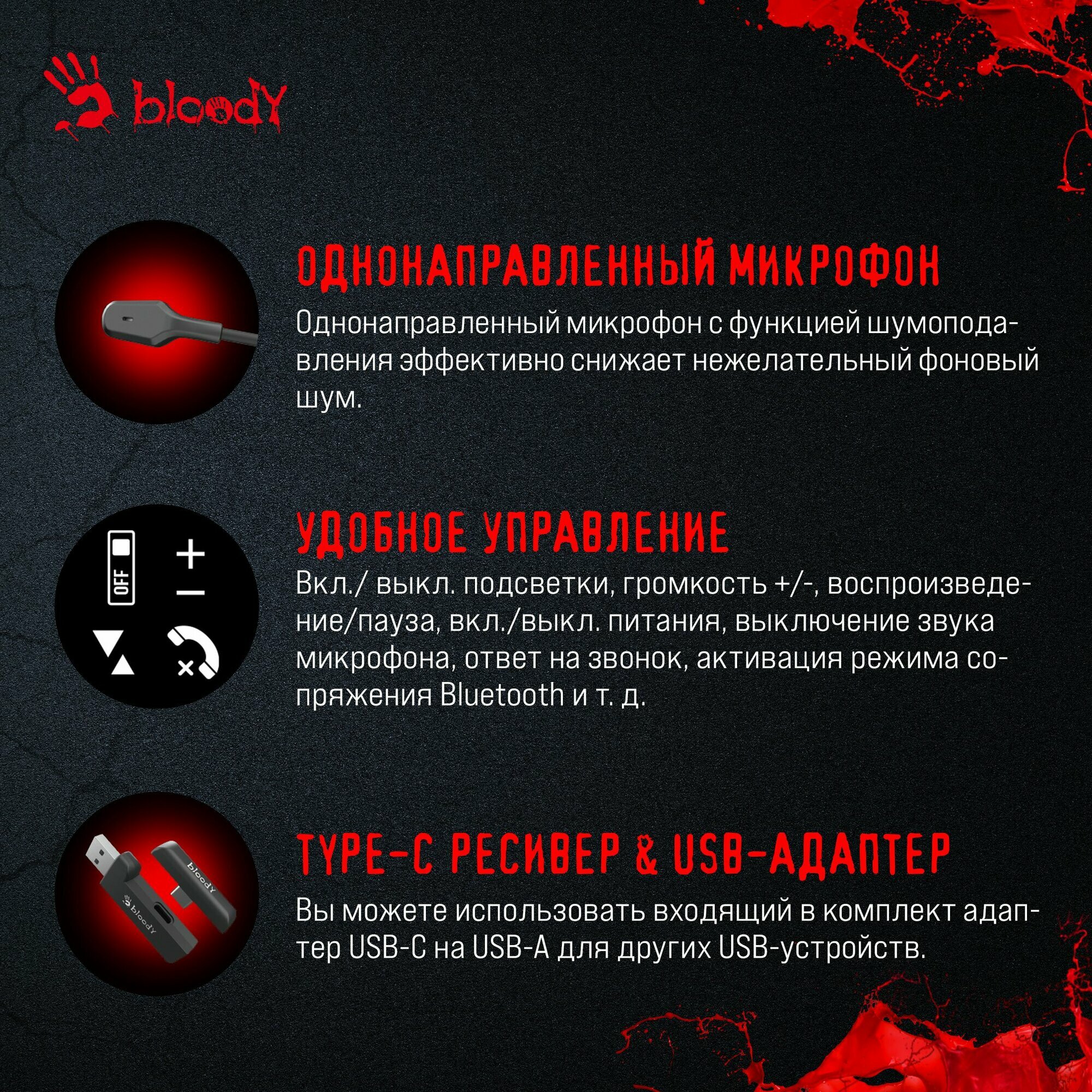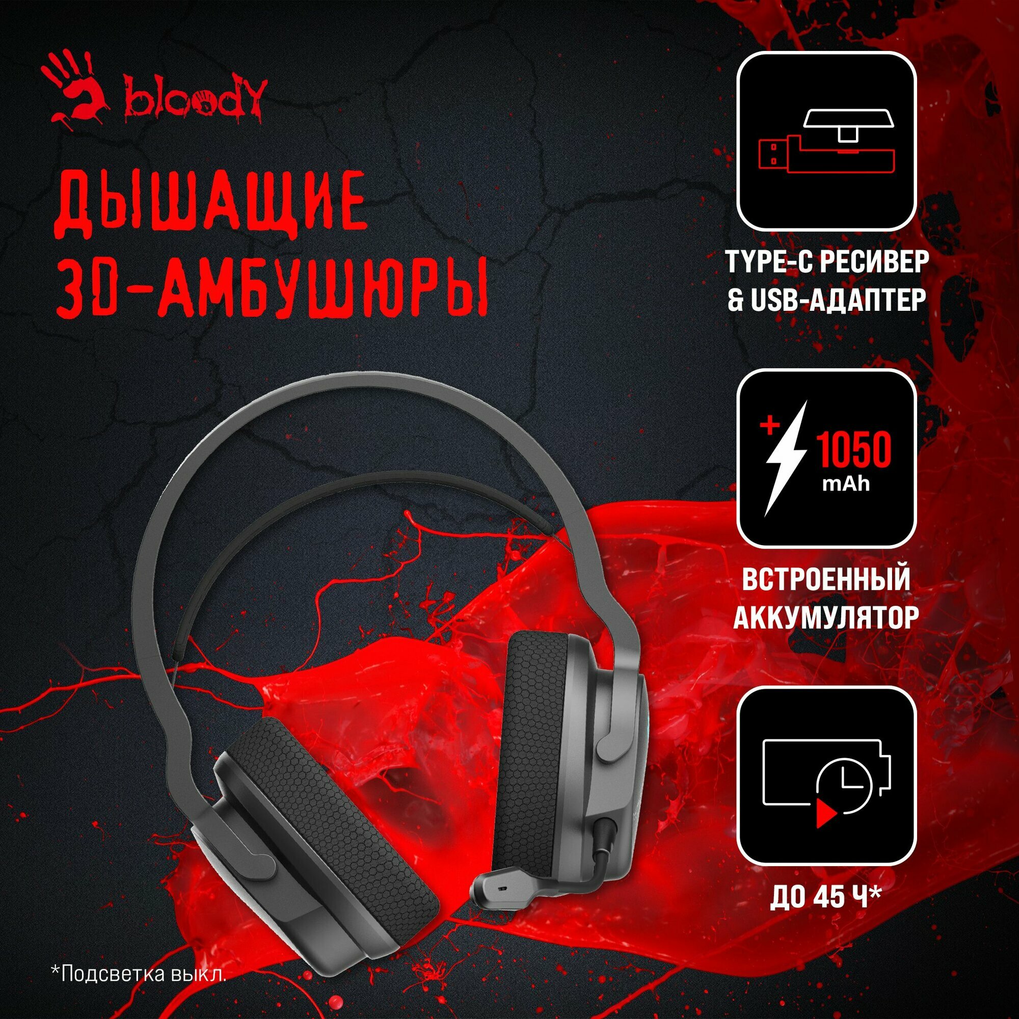 Купить Наушники игровые A4Tech Bloody GR370, черный, мониторные, bluetooth/радио/3,5 мм