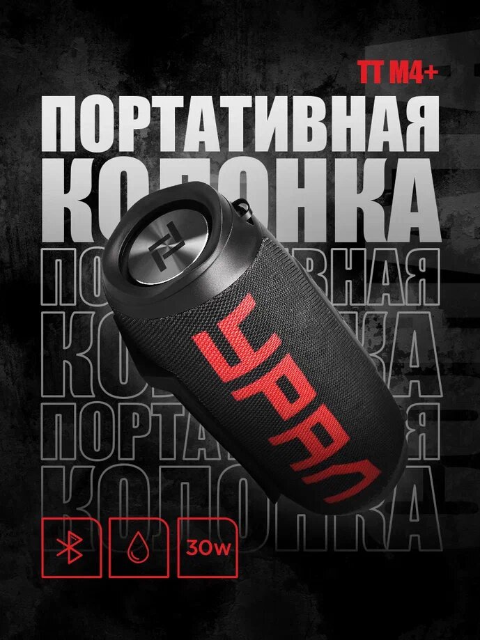 Портативная Bluetooth колонка Урал ТТ М4+ Урал, водонепроницаемая IP67, 30 Вт Мощность, TWS, FM-радио, беспроводная