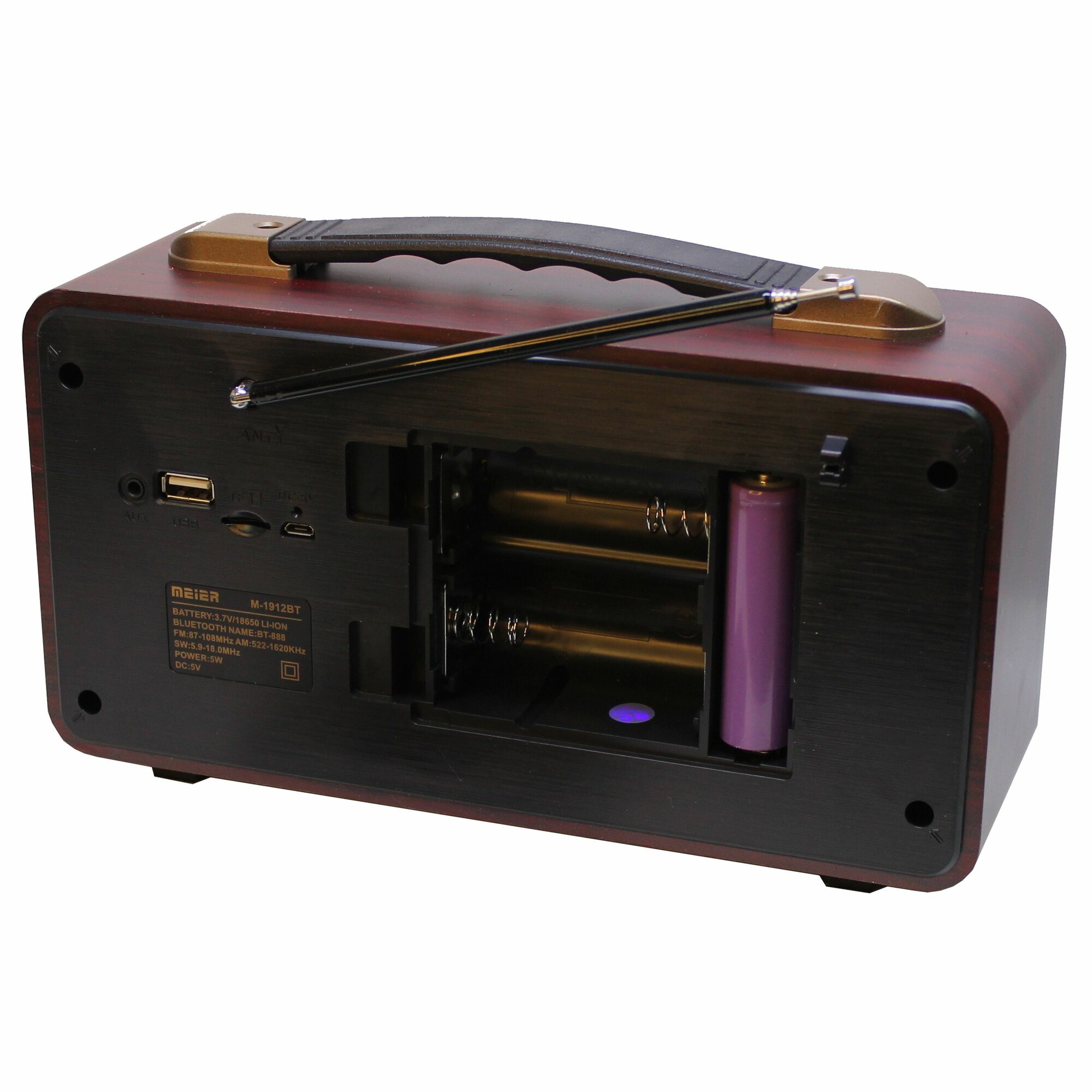 Стильный, с подсветкой шкалы, Bluetooth радиоприемник в стиле "Ретро" Meier M-1912BT Grey (со сменным аккумулятором и блоком питания DC 5V 1А в комплекте) интересное: