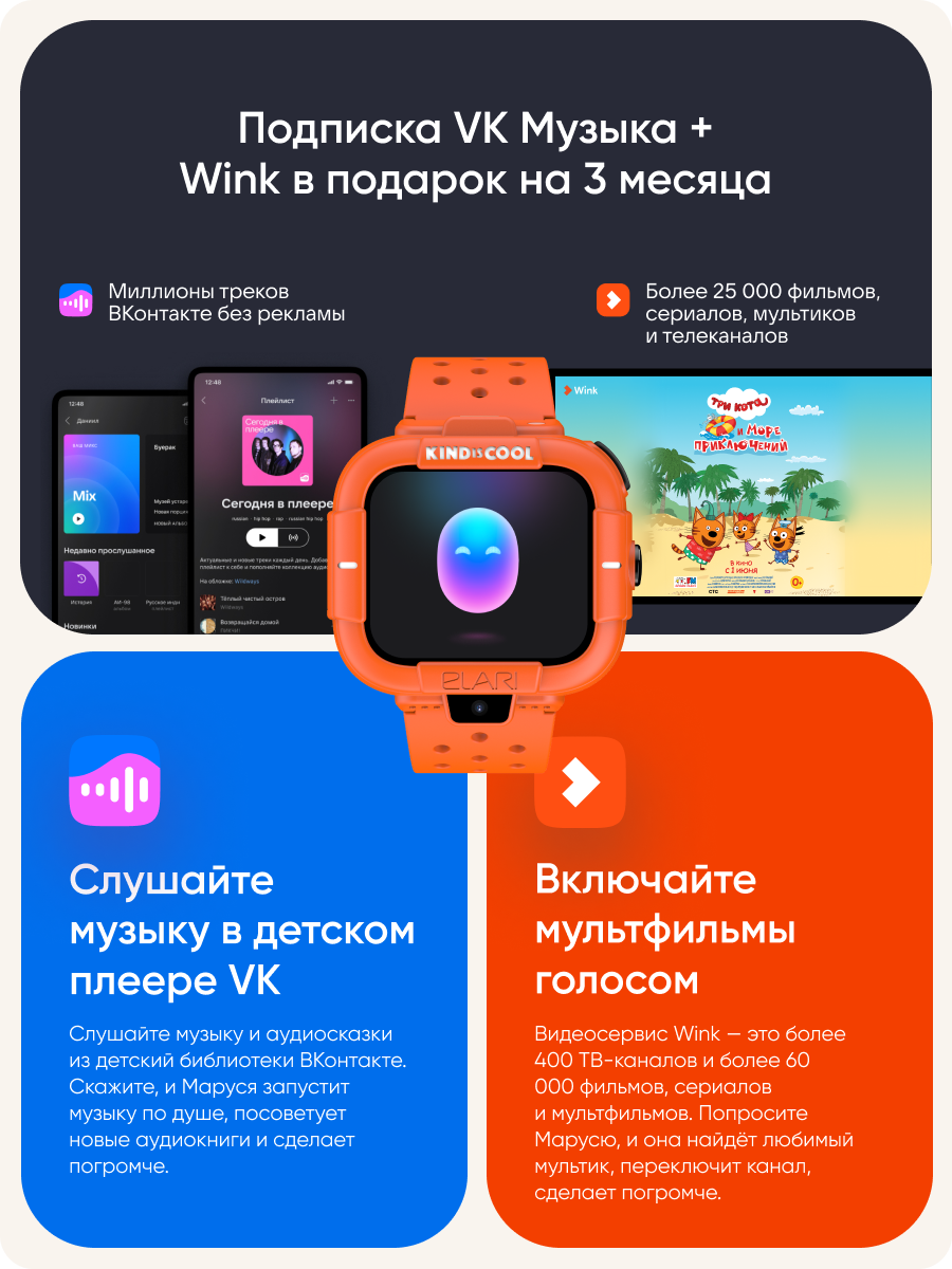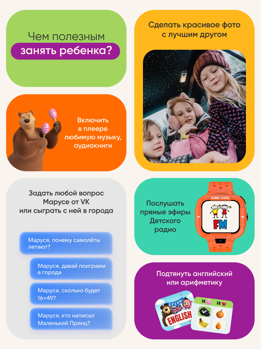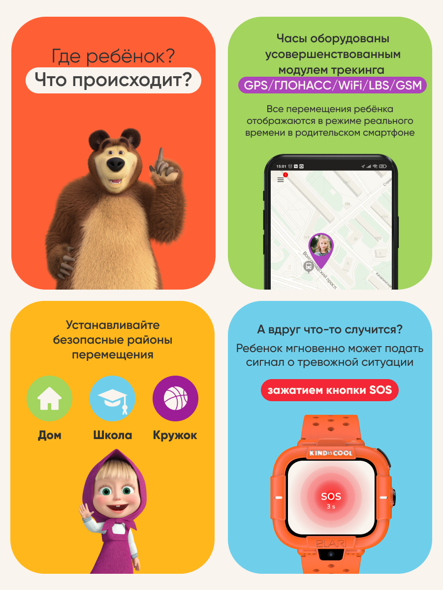 Детские умные часы Elari KidPhone Маша и Медведь 4G c Марусей Оранжевый интересное: