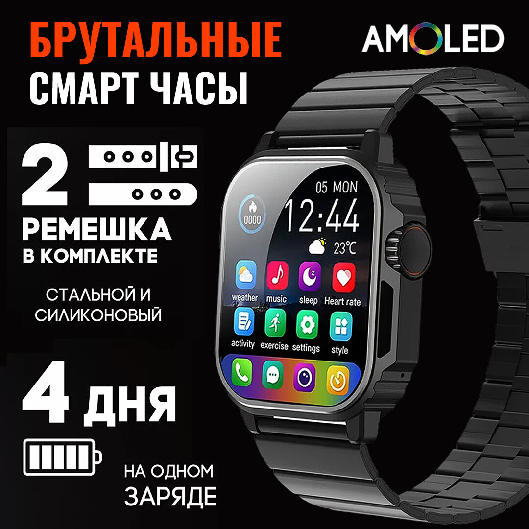 Умные смарт часы GoodSmart Watch X строгие чёрно-металлические с серым отливом и 2 ремешка в комплекте