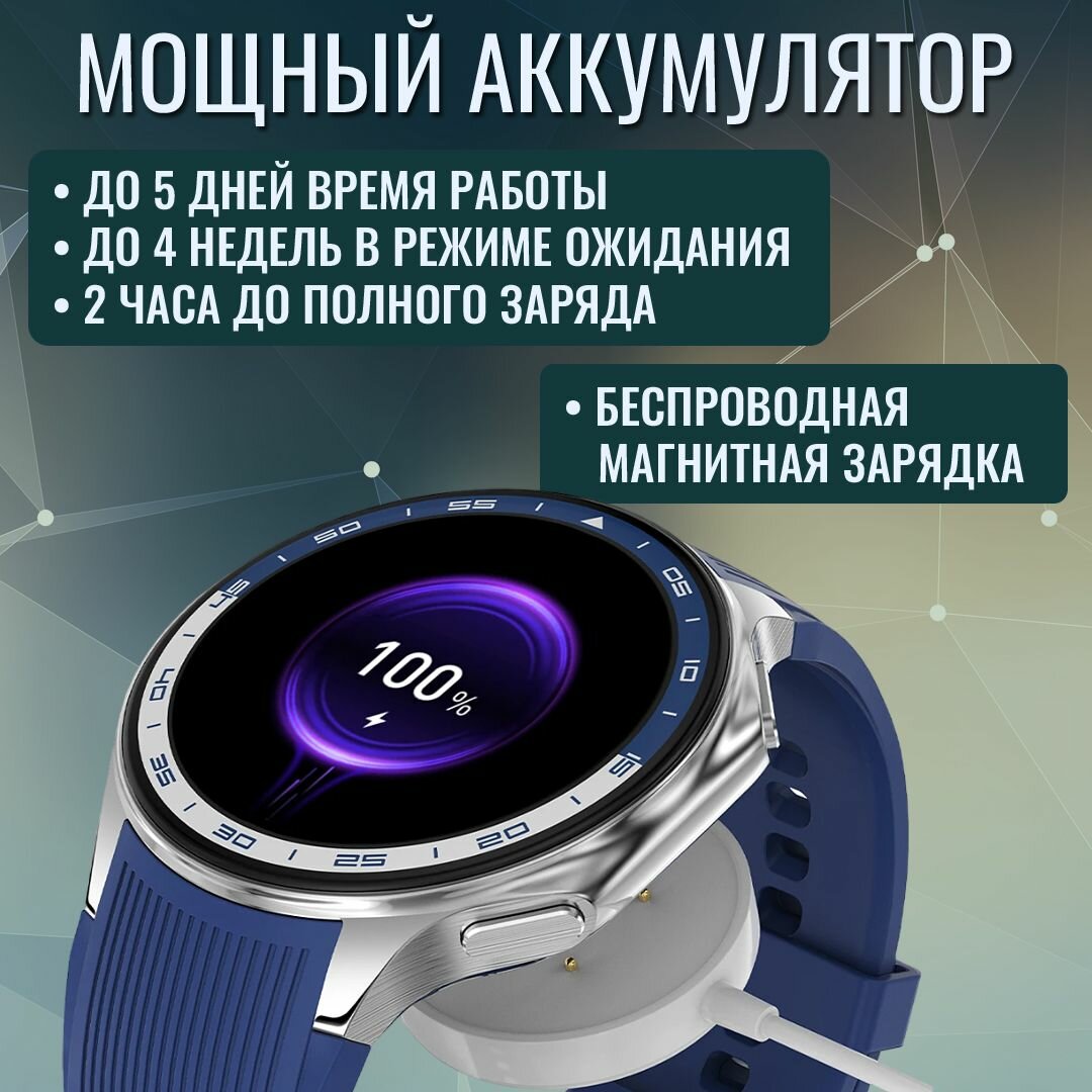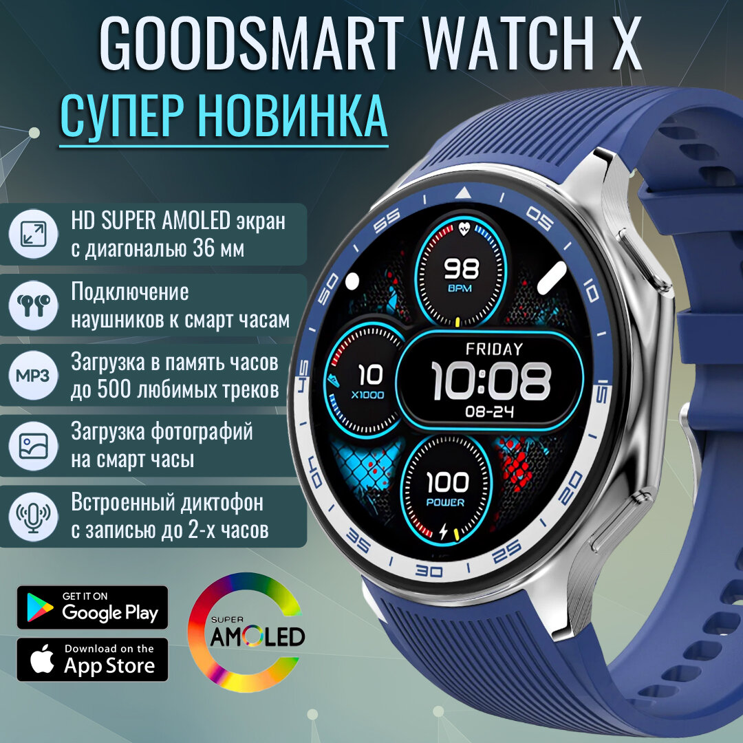 Умные смарт часы GoodSmart Watch X цвета серебристый металлик с лазурно-синим для андроид и iphone