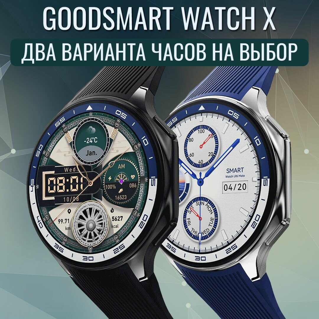 Умные смарт часы GoodSmart Watch X строгие чёрно-металлические с серым отливом и 2 ремешка в комплекте
