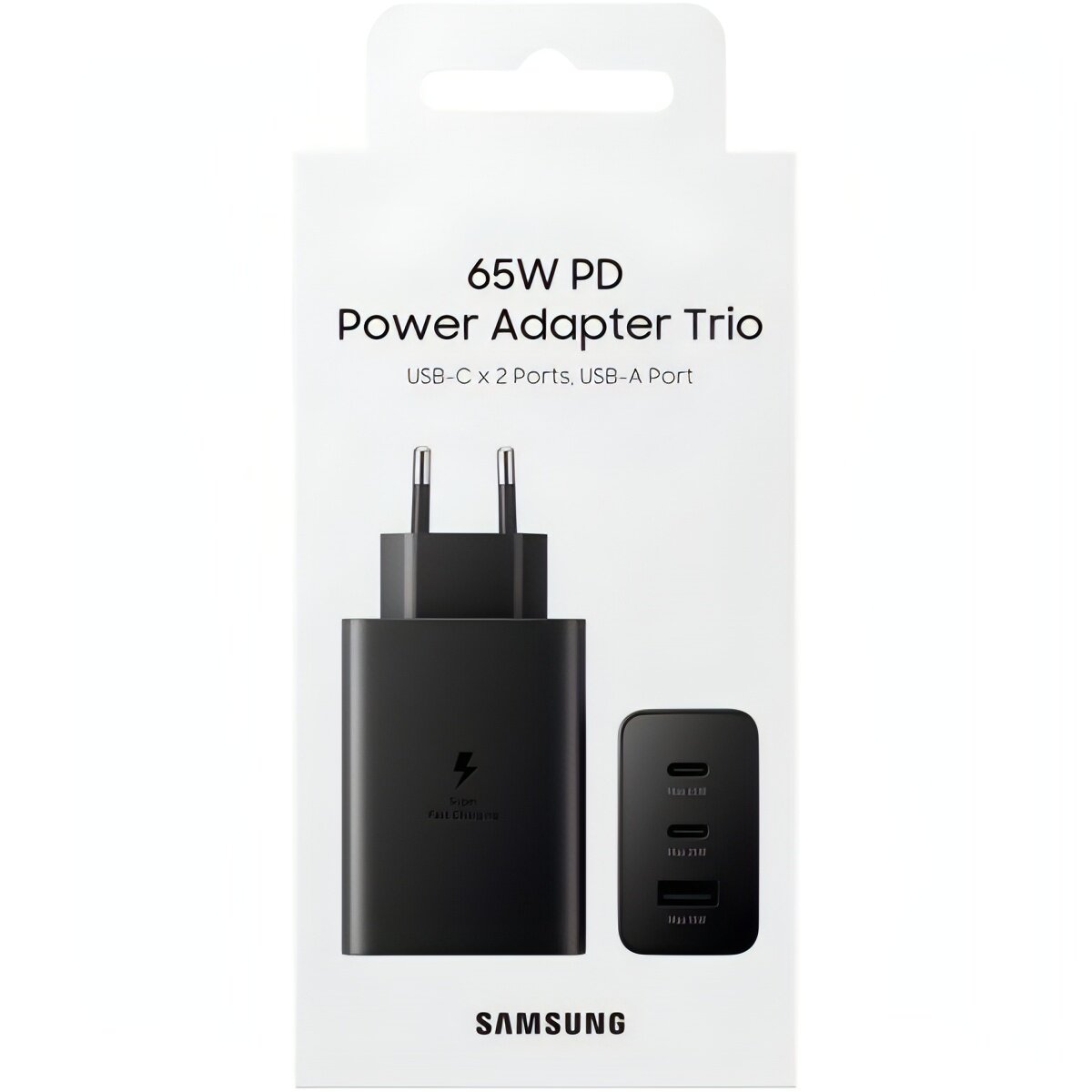 Сетевое зарядное устройство Samsung EP-T6530NBEG 65W 2xType C + USB, черное