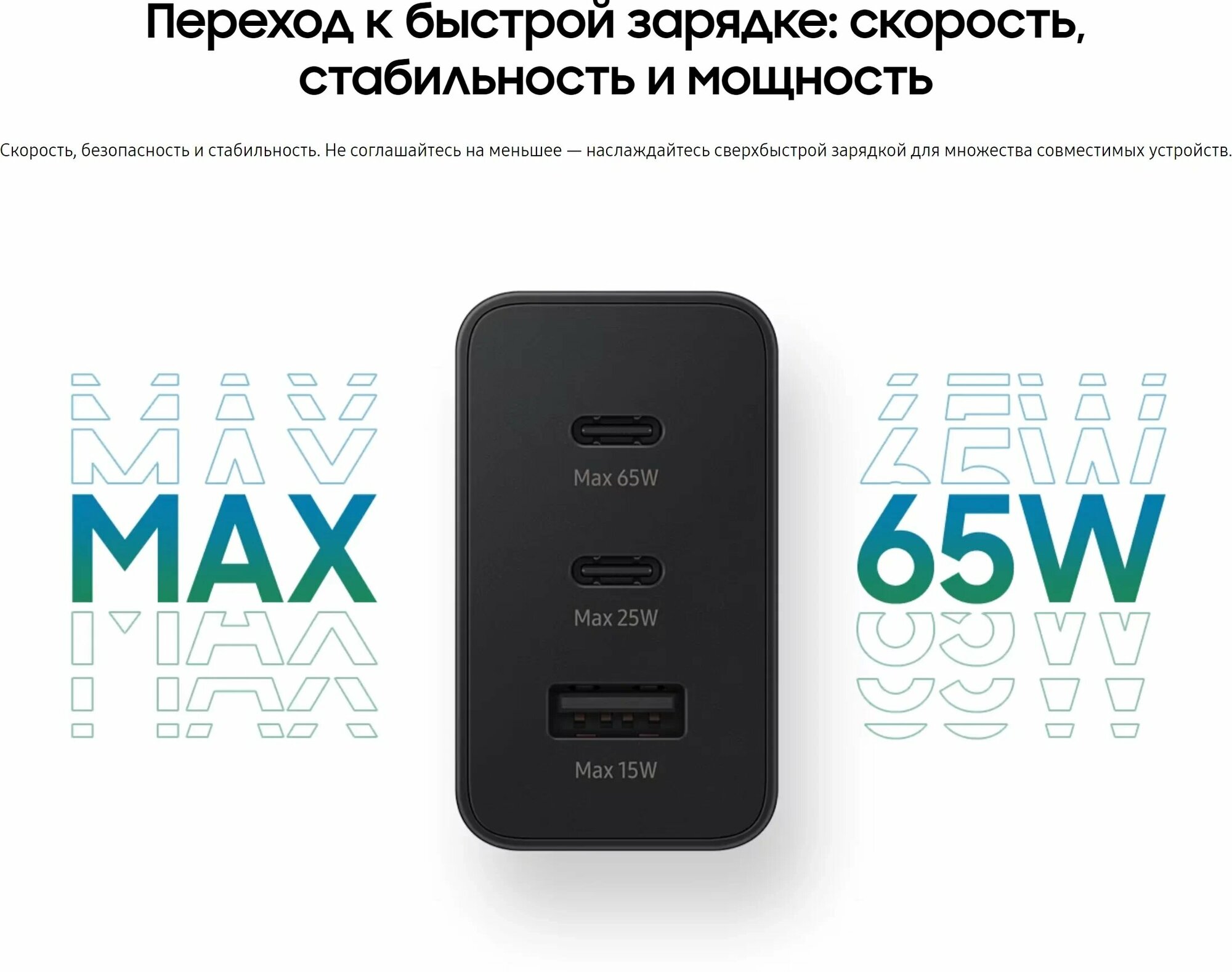 Сетевое зарядное устройство Samsung EP-T6530NBEGEU EP-T6530 65W 3-Port USB-Cx2/USB Black