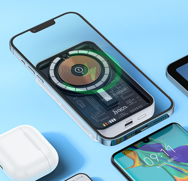 Внешний аккумулятор MagSafe HOCO Q10A Transparent & 3-in-1/ 3 в 1 (10000mAh)