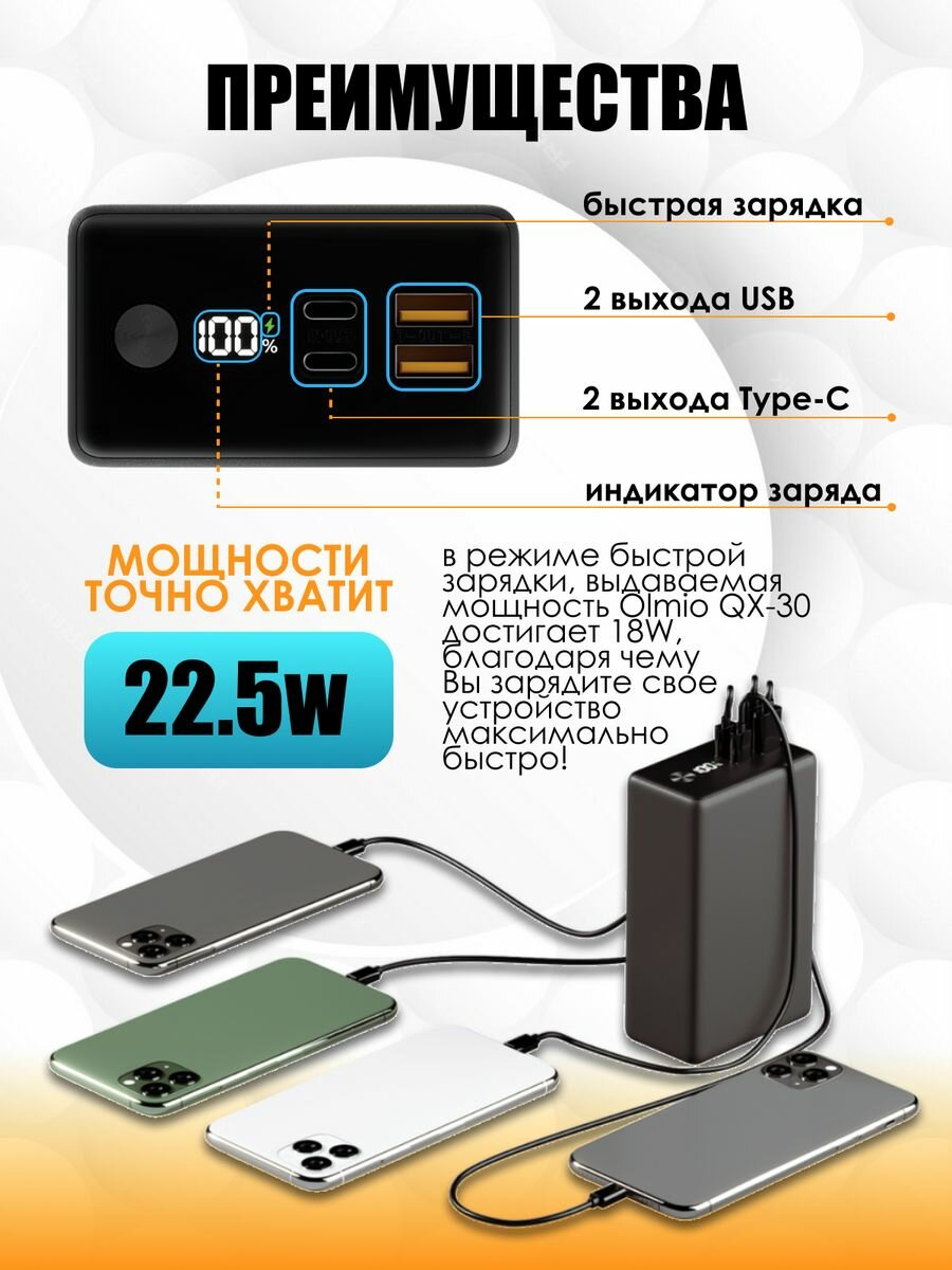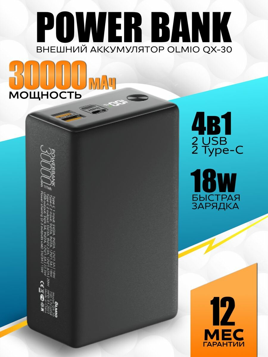 Внешний аккумулятор QX-30, 30000mAh, графит, OLMIO интересное: