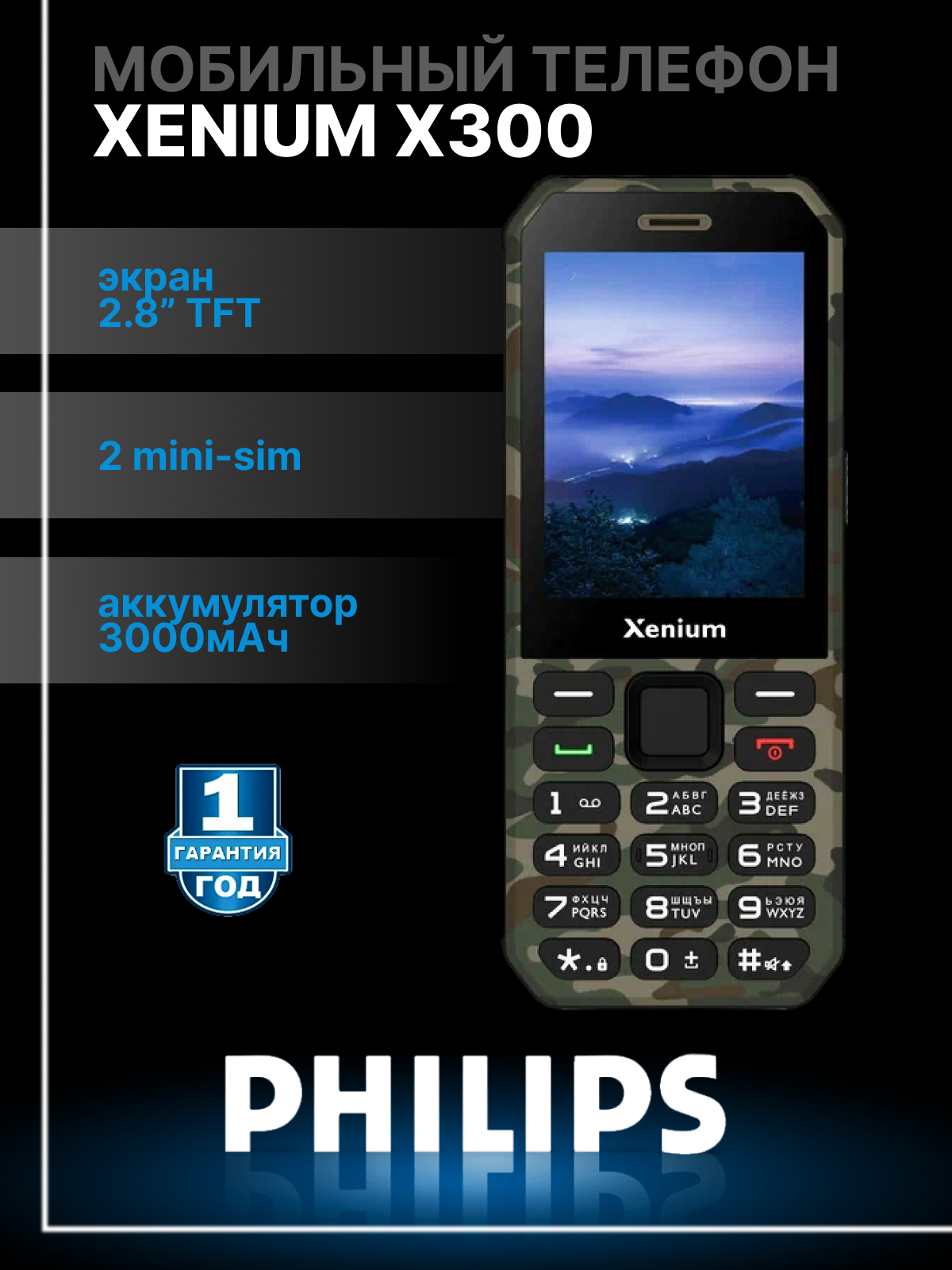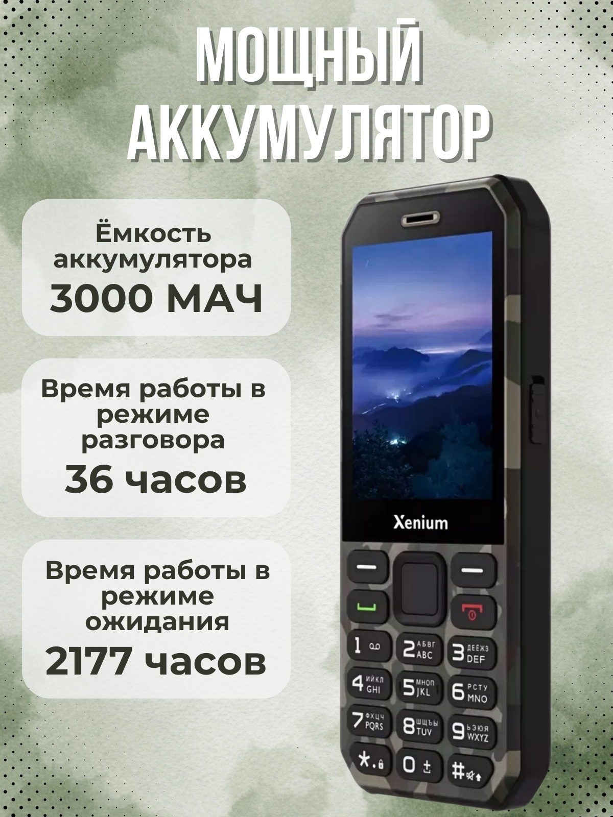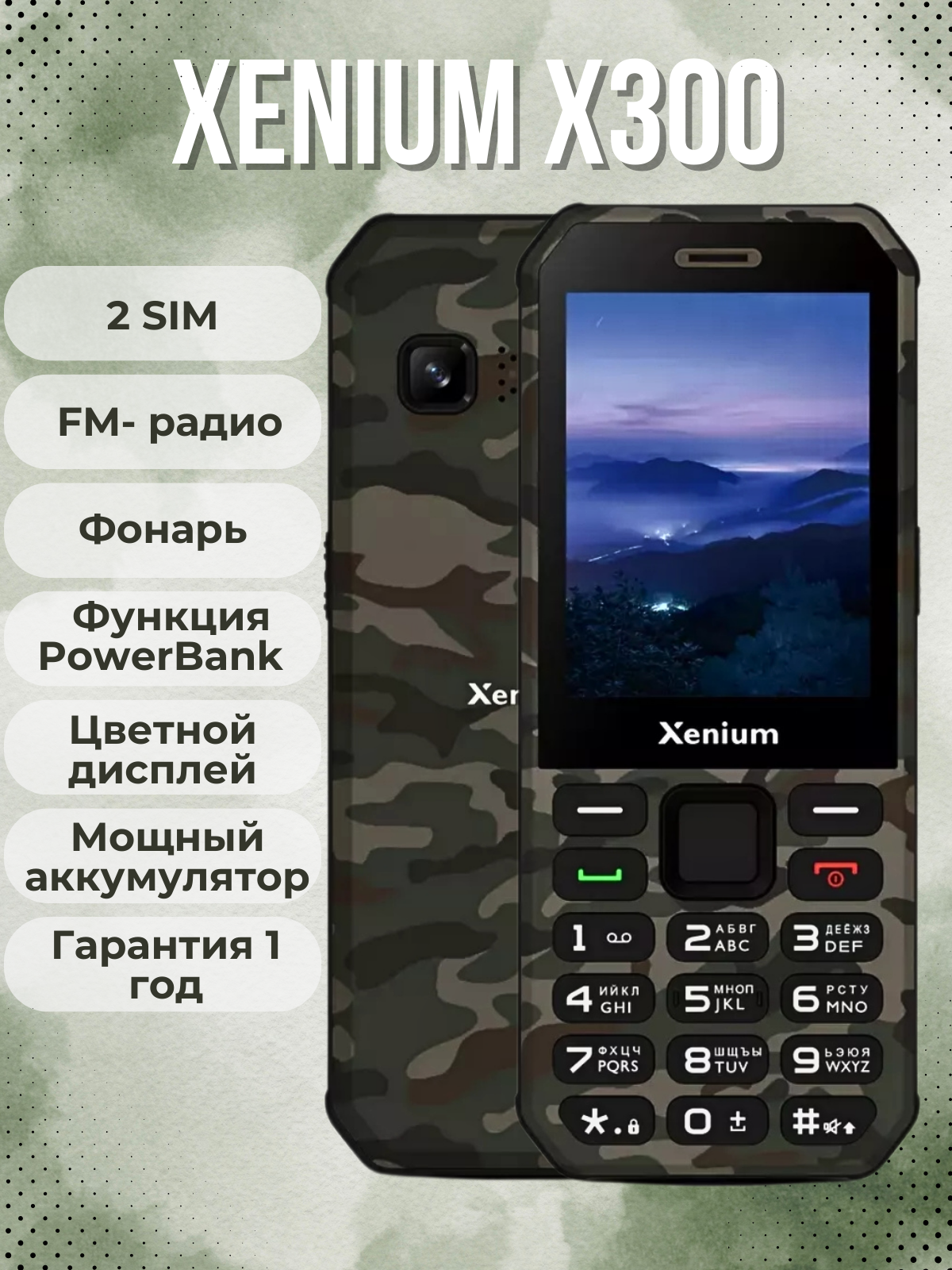 Мобильный телефон XENIUM X300 Зеленый камуфляж