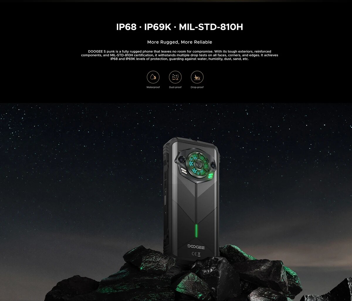 Смартфон DOOGEE S Punk 6/256 ГБ, Dual nano SIM, phantom black