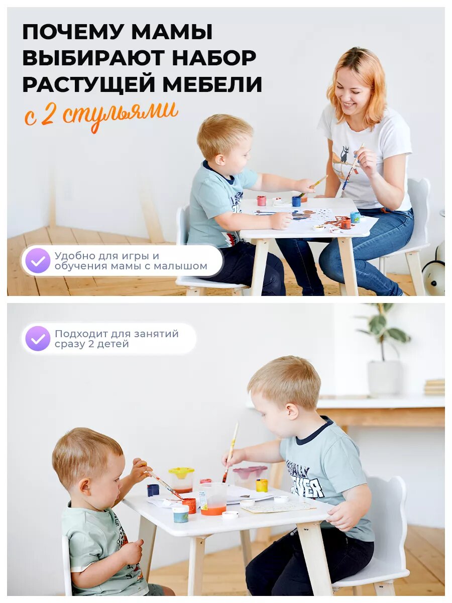| Комплектация | растущий стол, растущий стул - 2 шт, инструкция, защитные накладки, ключ для сборки |