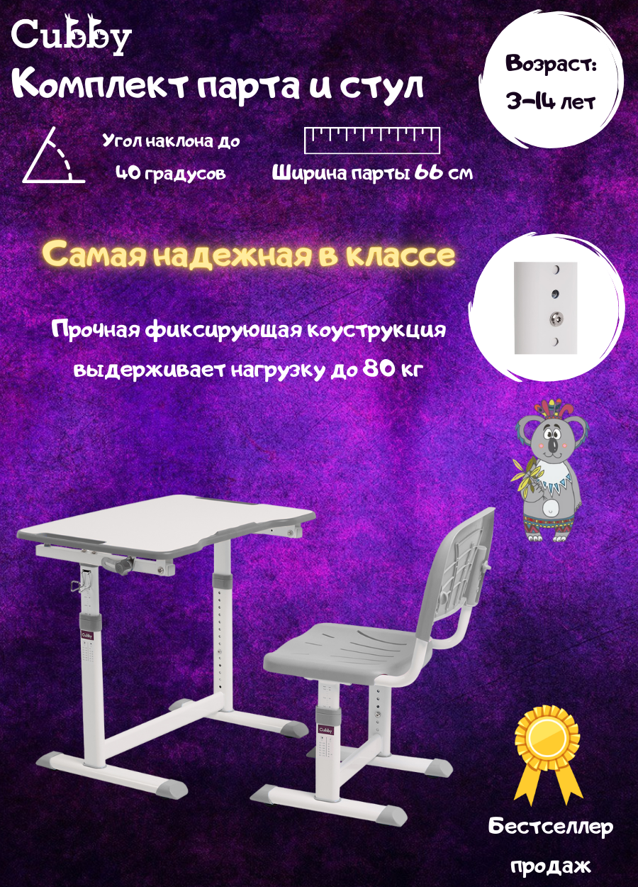 Парта Cubby детская растущая парта трансформер для школьника и стул Sorpresa