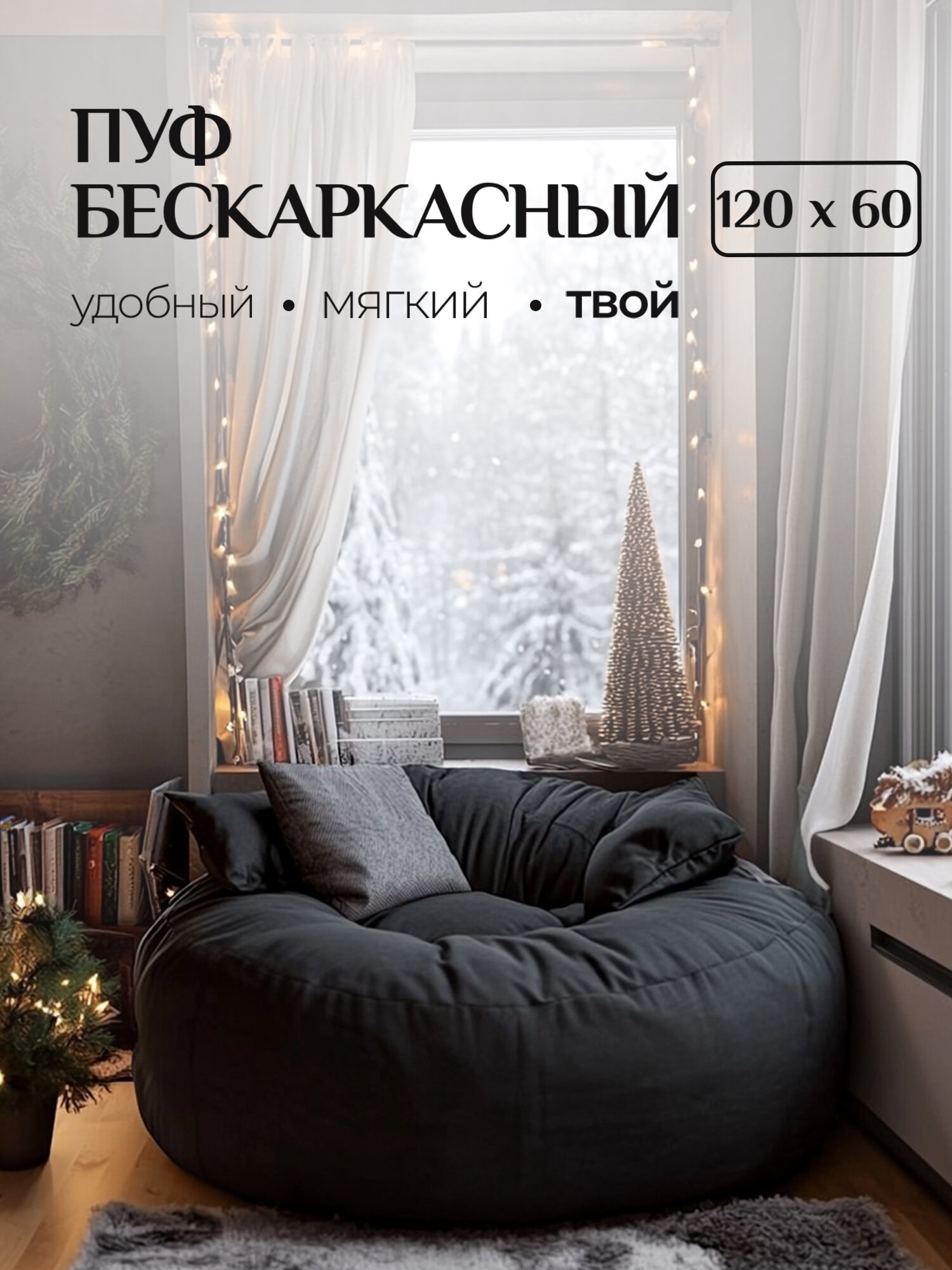 Пуфик мешок Bubble Bag XL 120х60 велюр Черный бескаркасное кресло пуф большое мягкое