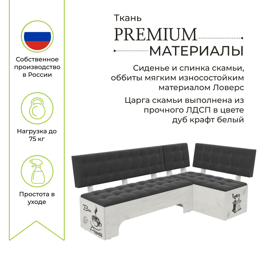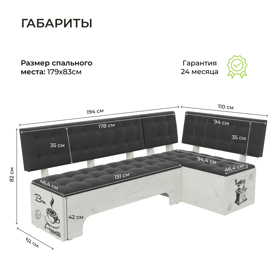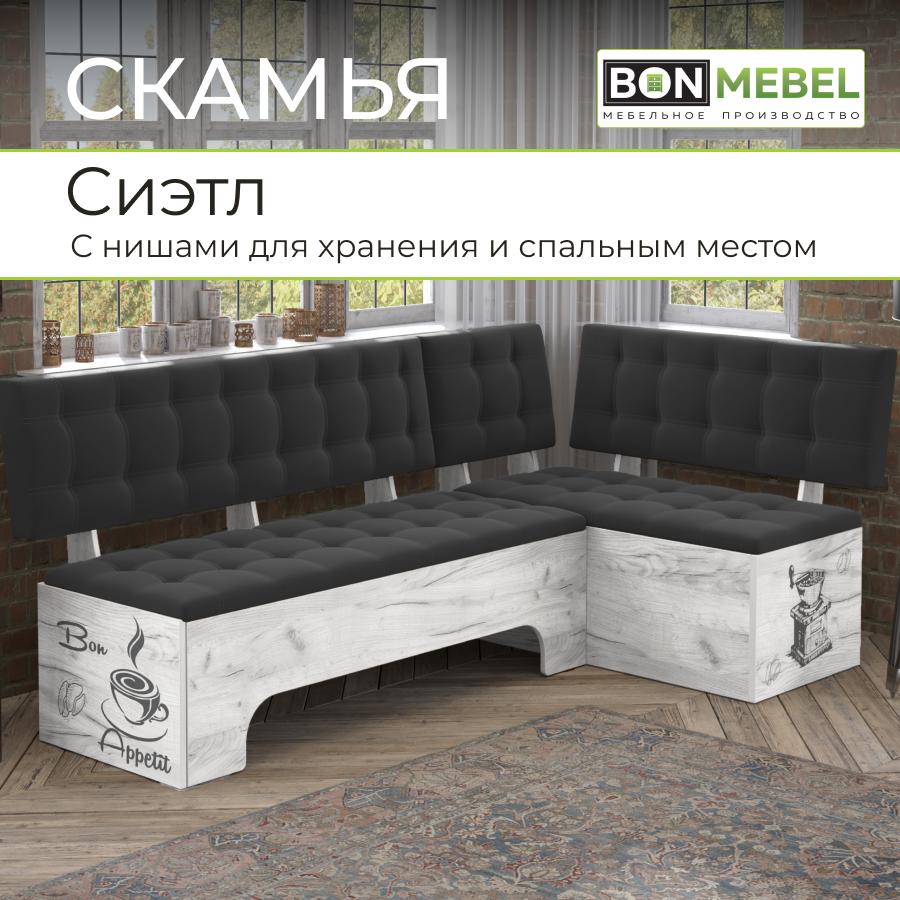 СохранитьКухонный уголок Сиэтл со спальным местом, BONMEBEL Дуб Крафт белый/Ловерс серый, 194х110х82 см интересное:
