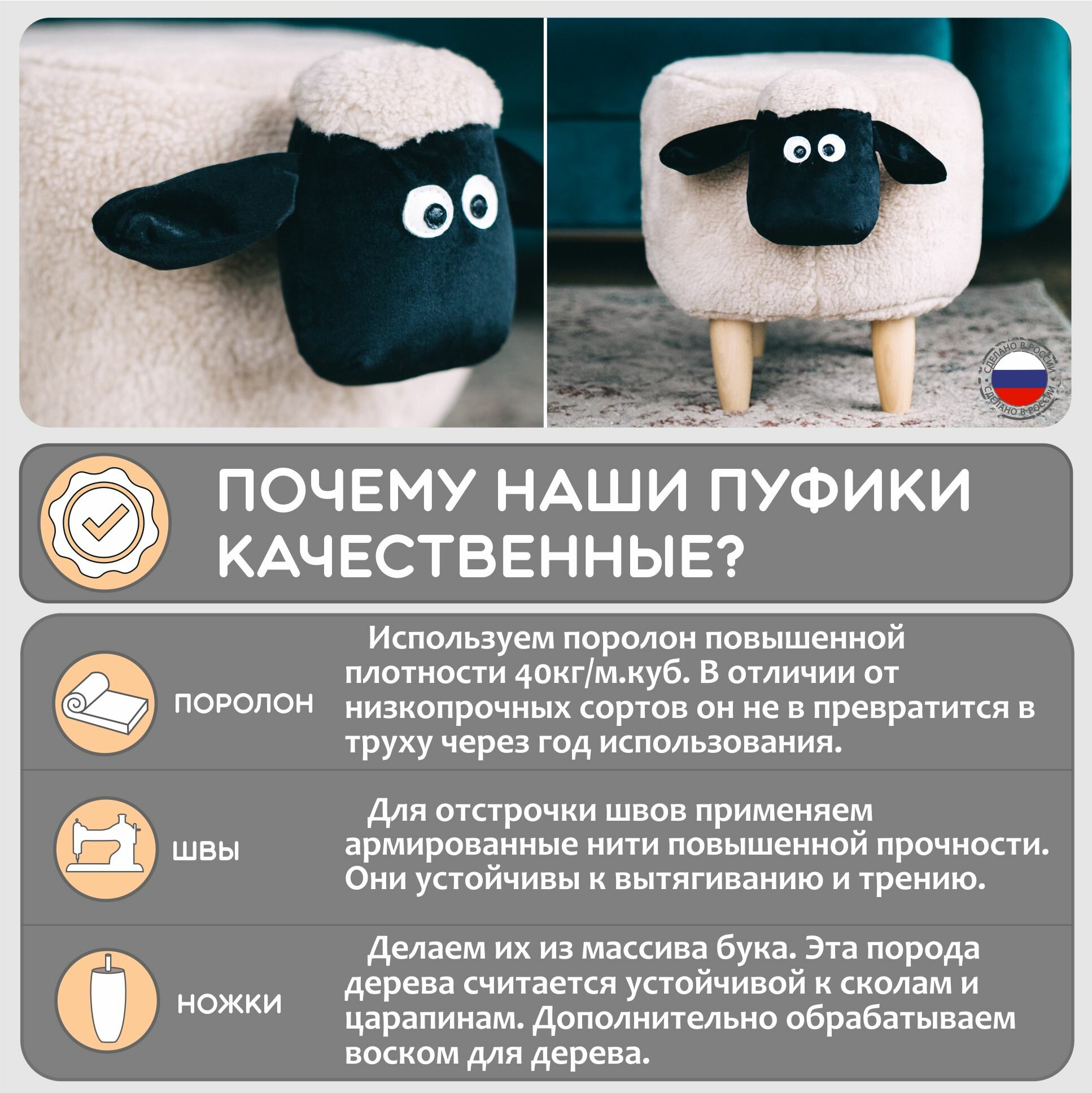 Пуфик с ящиком для хранения. Пуф-животное Черный Барашек