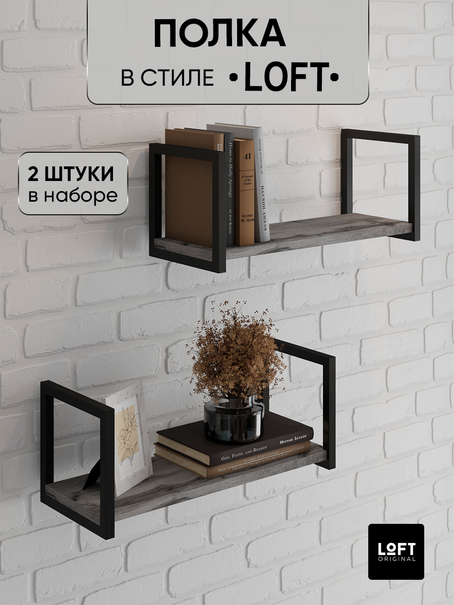 Купить Полка настенная деревянная навесная лофт / Комплект полок из 2 штук серых