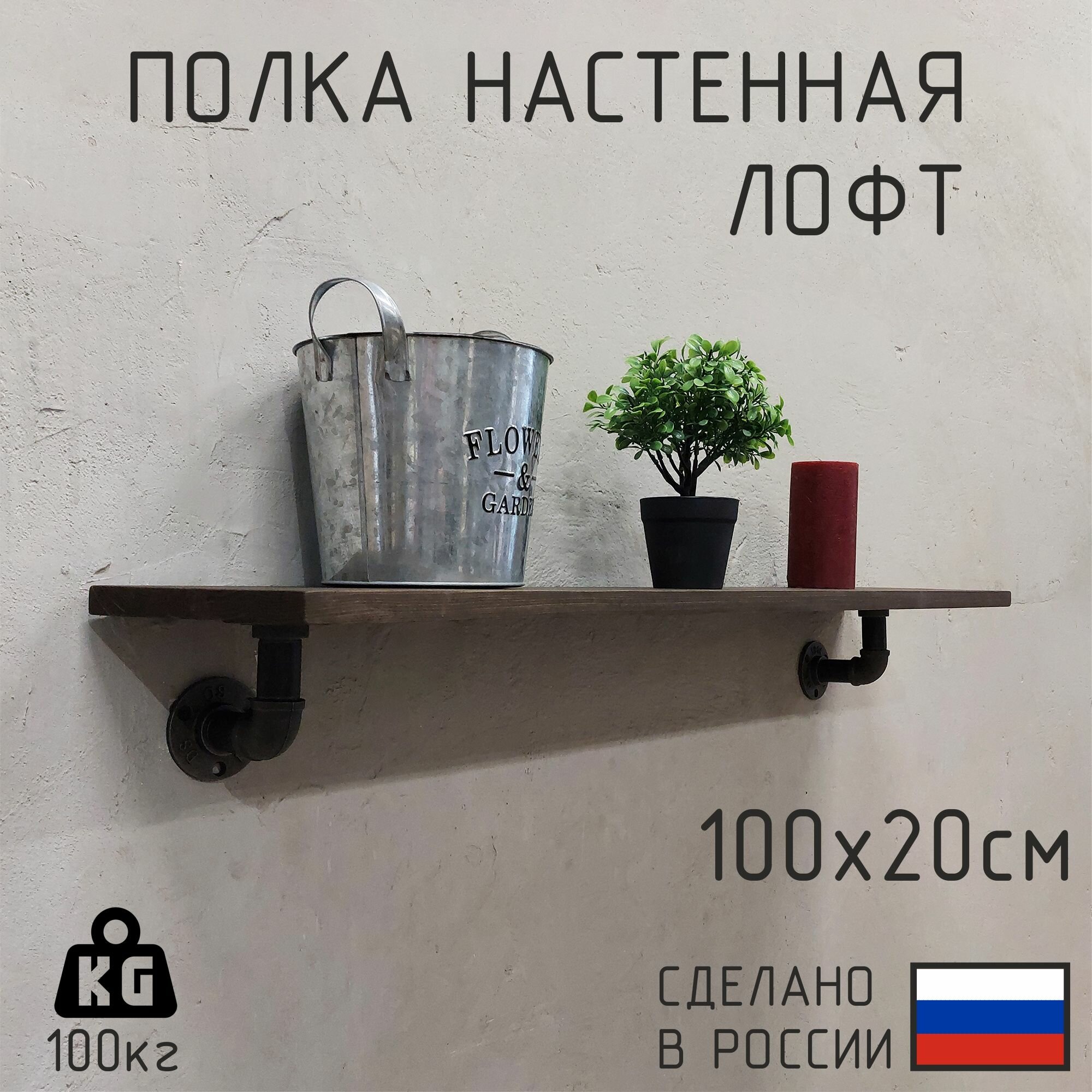 Купить Полка лофт настенная для книг, для ванной, для кухни, в прихожую и гостинную 100 см. Цвет: Венге