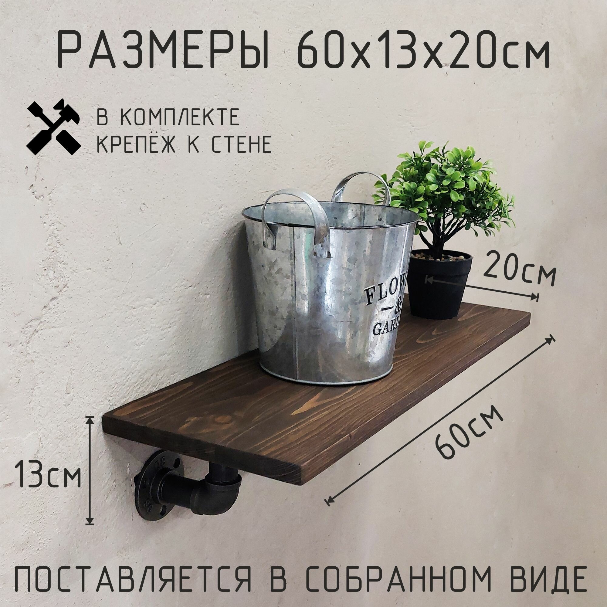 Полка лофт настенная для книг, для ванной, для кухни, в прихожую и гостинную 60 см