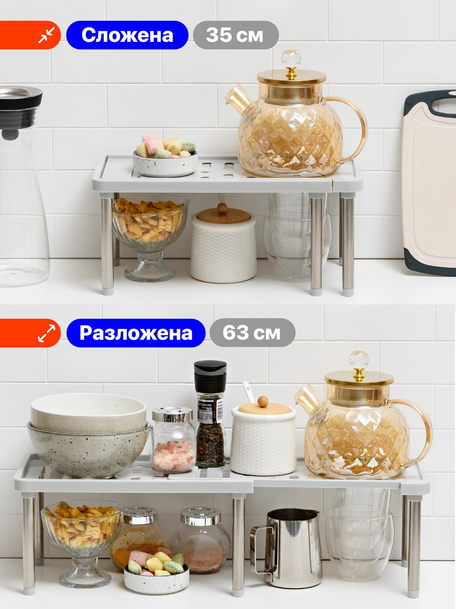 Полка подставка в кухонный шкаф раздвижная Birdhouse, Полочка дополнительная в шкаф для кухни, серая интересное: