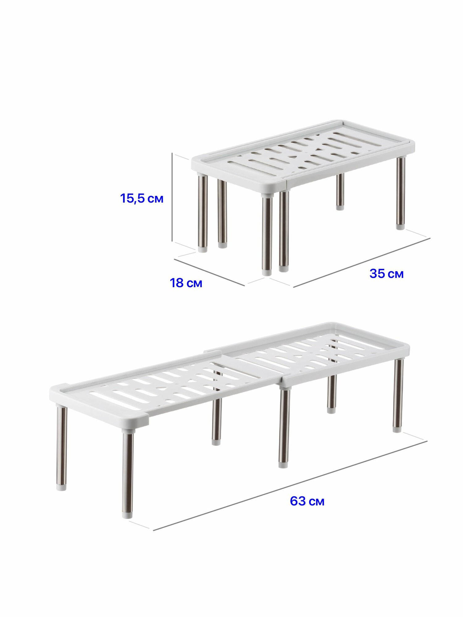 Полка в шкаф раздвижная Birdhouse/ Полочка дополнительная в шкаф для кухни/ Полка подставка в кухонный шкаф, Белый