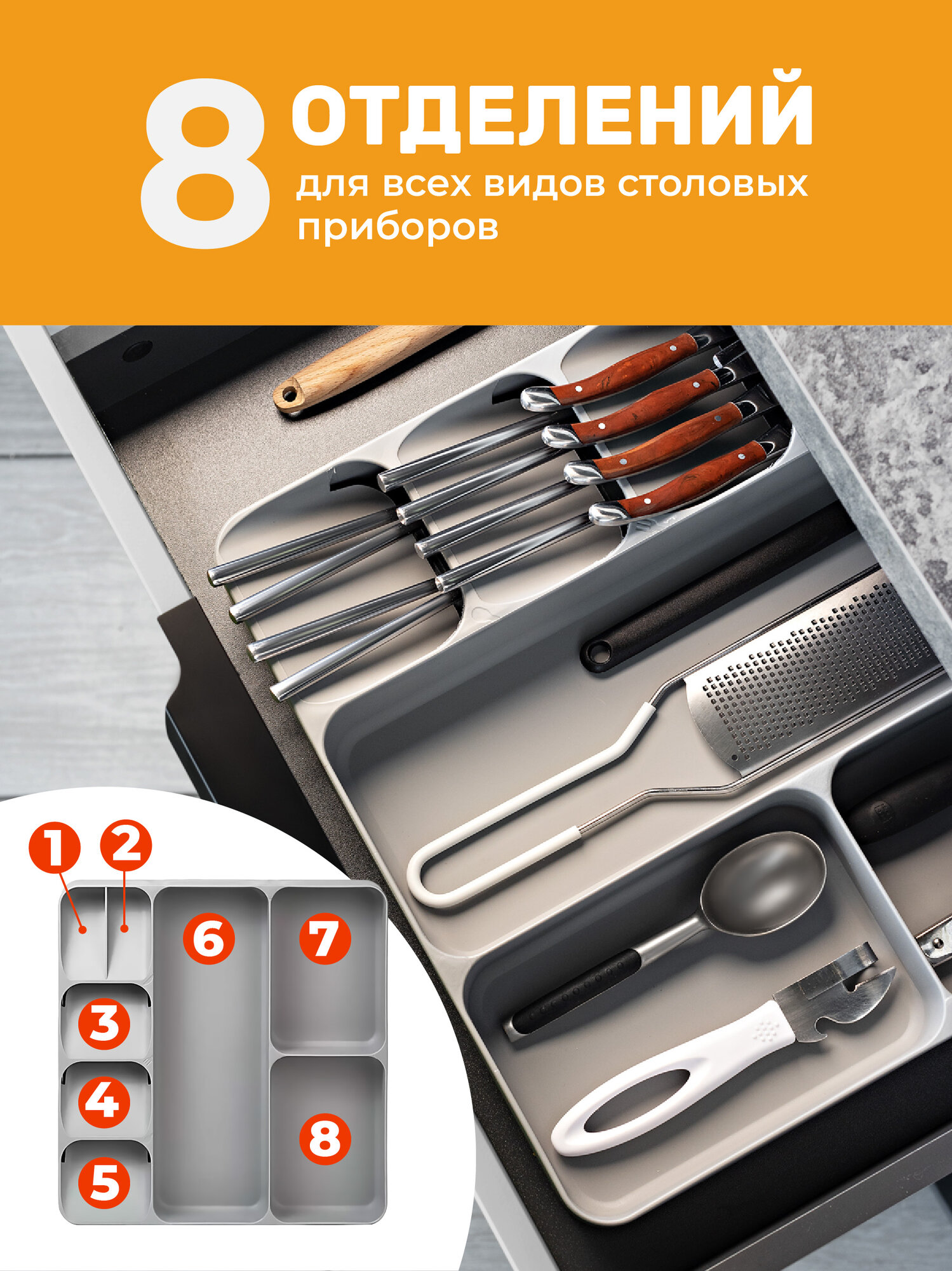 Лоток для столовых приборов Shiny Kitchen, органайзер для столовых приборов интересное:
