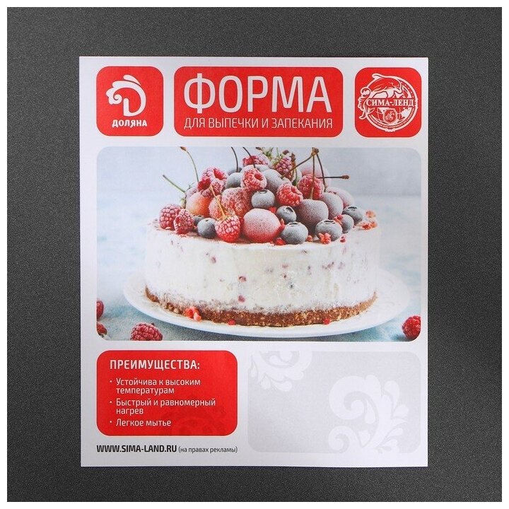 | Дополнительная информация | Рекомендуется избегать применения металлических предметов, губок и высокоабразивных моющих средств. Перед первым использованием тщательно промойте форму. |
