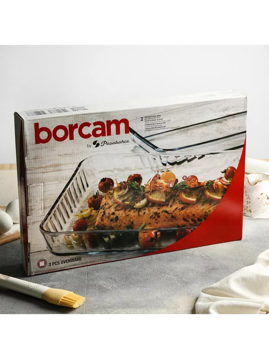 Набор форм для запекания Borcam, стекло, 2 предмета: 1.95 л, 1.04 л