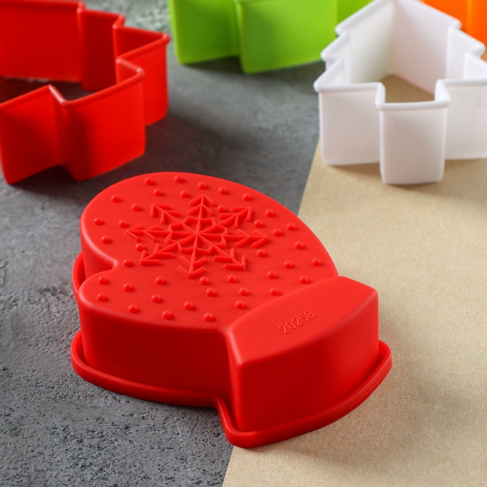 Форма силиконовая для выпечки Новый год, 23x23x2,3 см, 7 ячеек