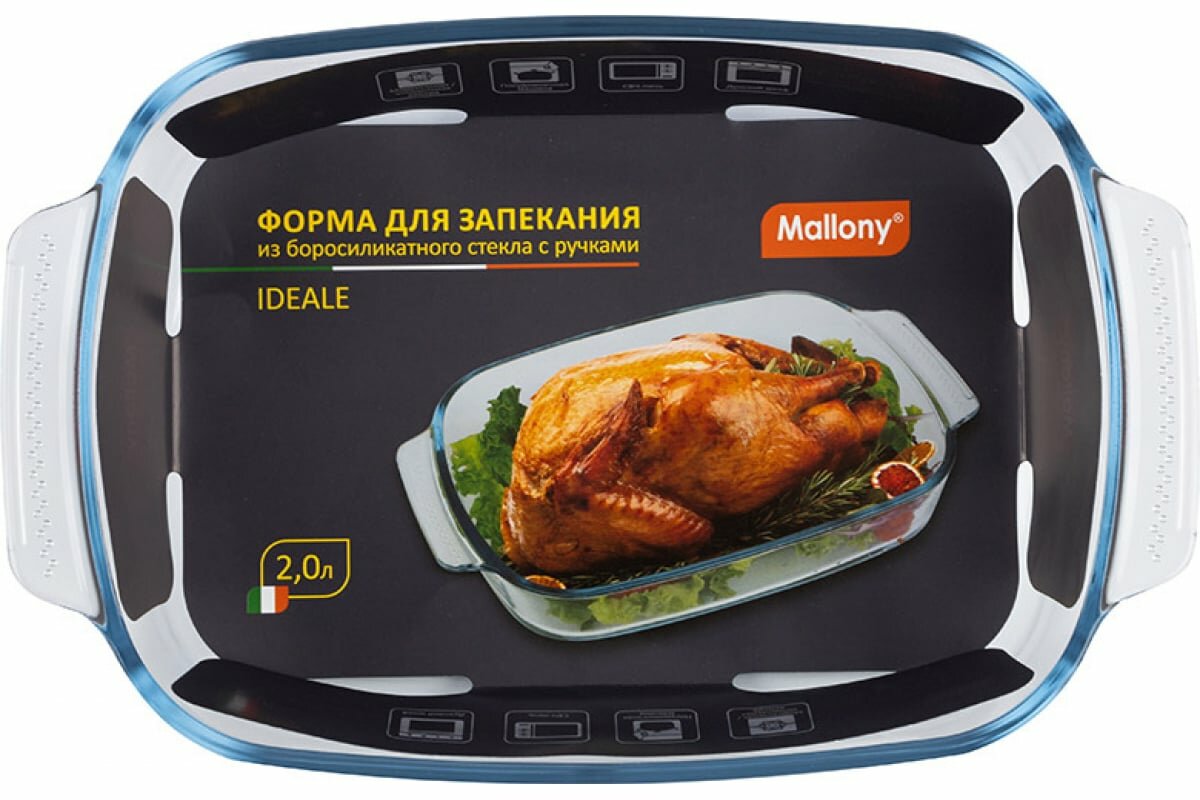 Форма для запекания IDEALE, 2 л, с ручками, прямоугольной формы, из боросиликатного стекла 103630 Mallony