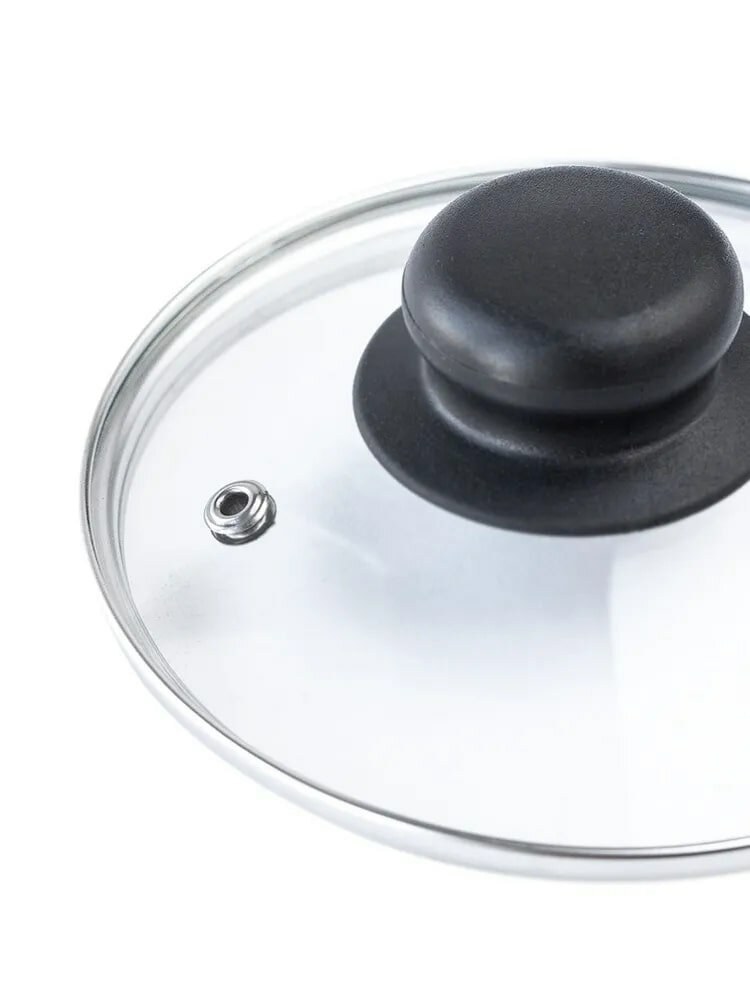 Крышка стеклянная TimA / ТимА низкая с ручкой и пароотводом, диаметр 180мм / для сковороды или кастрюли / аксессуары для кухни