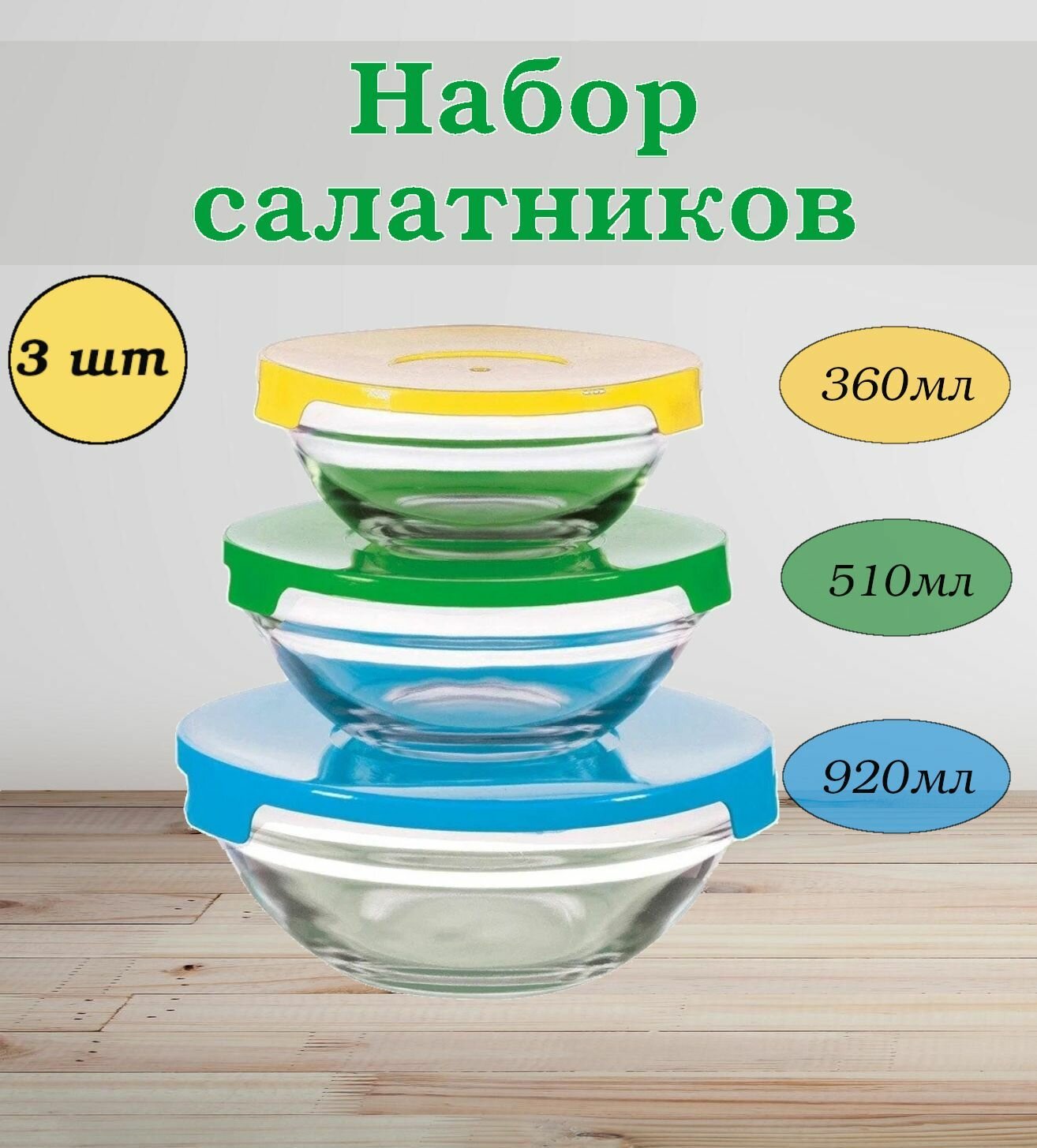 Набор из 3 стеклянных мисок с крышками INSALATO (360/510/920мл)