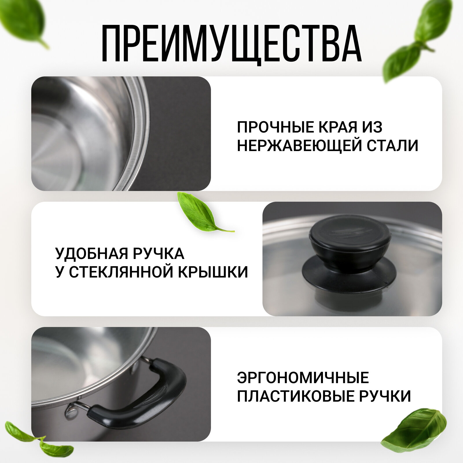 Набор посуды из нержавеющей стали, 3 предмета: кастрюли 1 л, 1,4 л, 1,8 л, d=15/17/18,5 см, крышки, индукция
