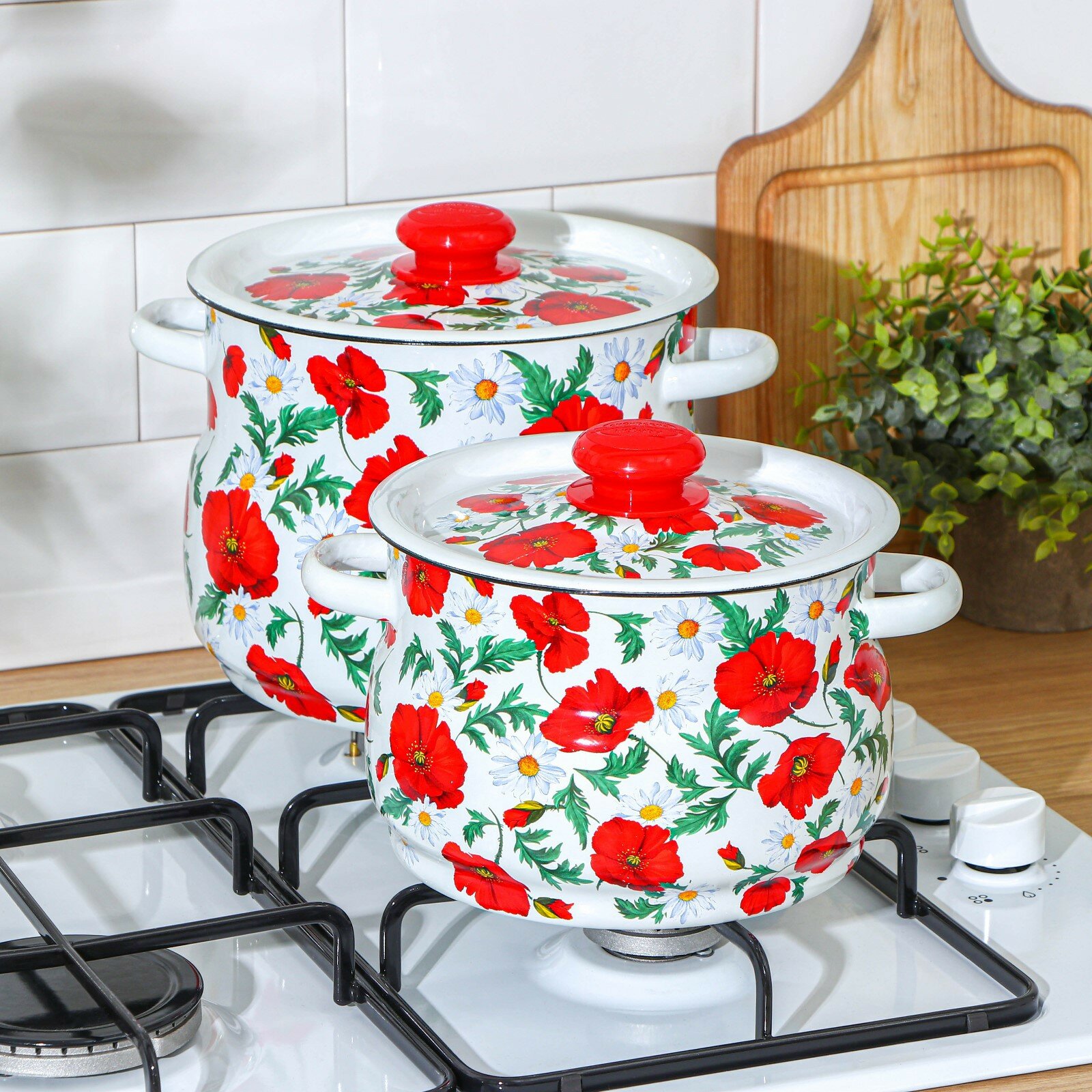 Сибирские товары Набор кастрюль «Маки сибирские», 2 предмета: 4 л, 5,5 л, эмалированные крышки, индукция