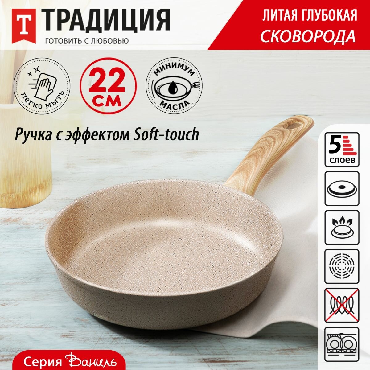 Сковорода Традиция Ваниль 22см (ТВ2221)