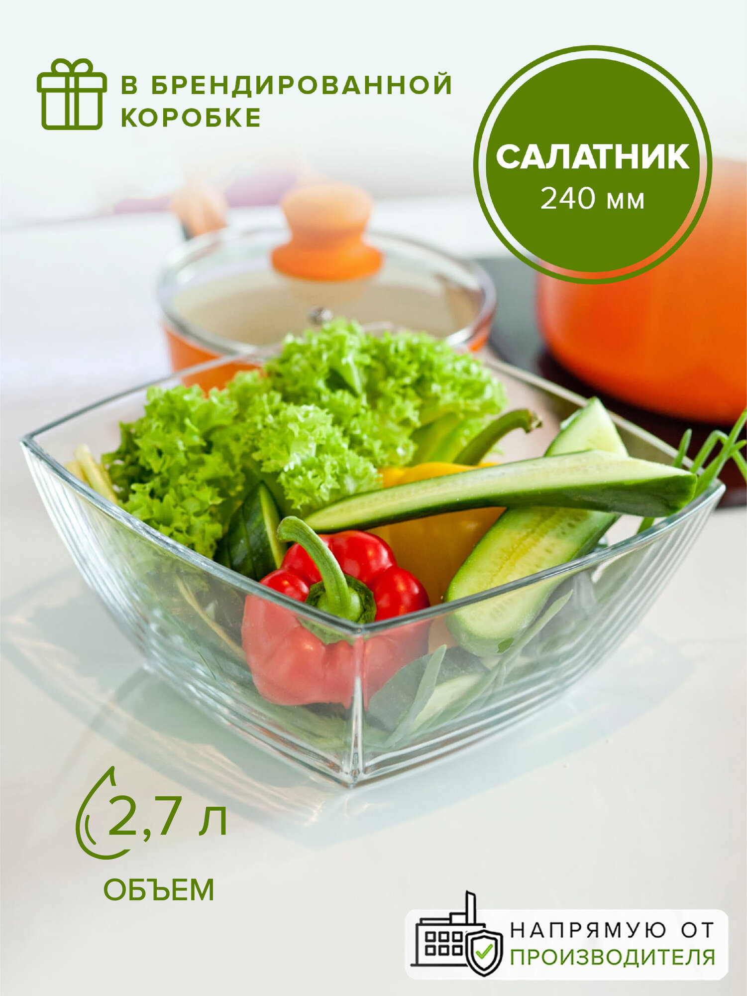 | Дополнительная информация | Салатник квадратный большой стеклянный 24х24 см бренда Pasabahce. |
