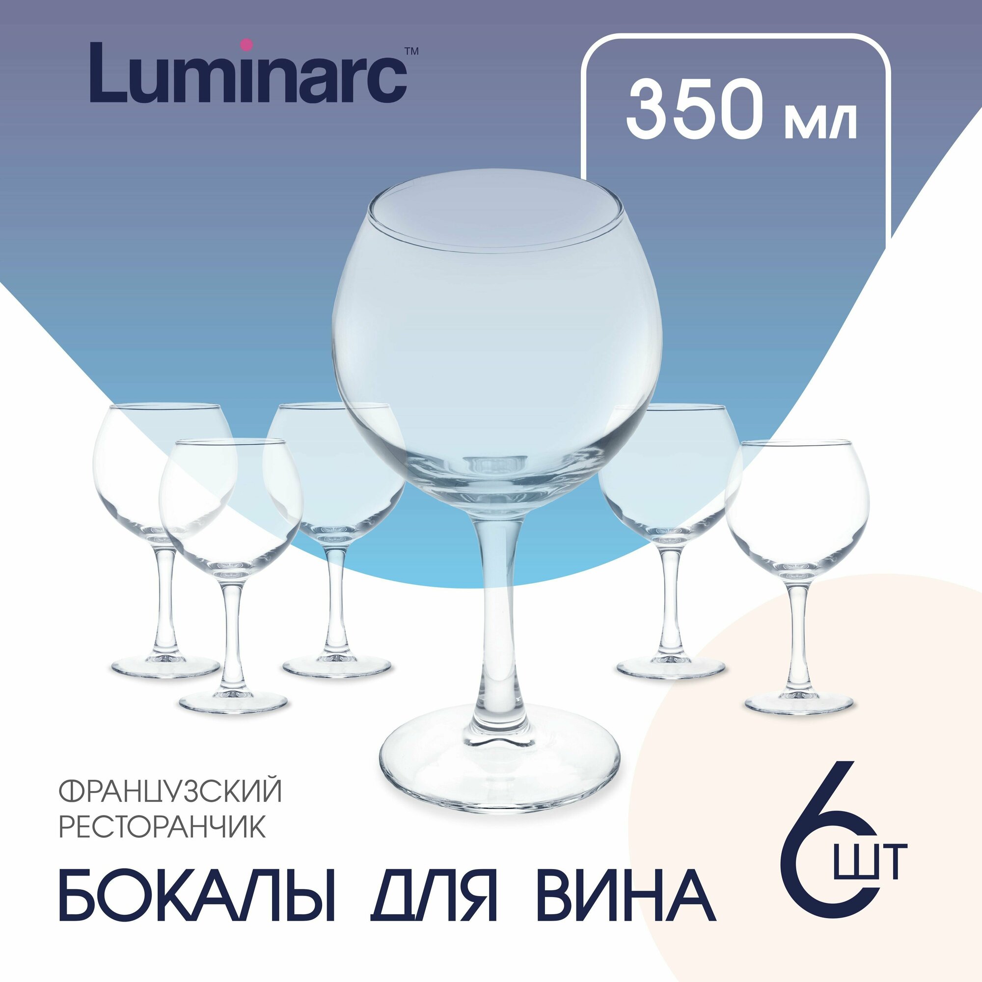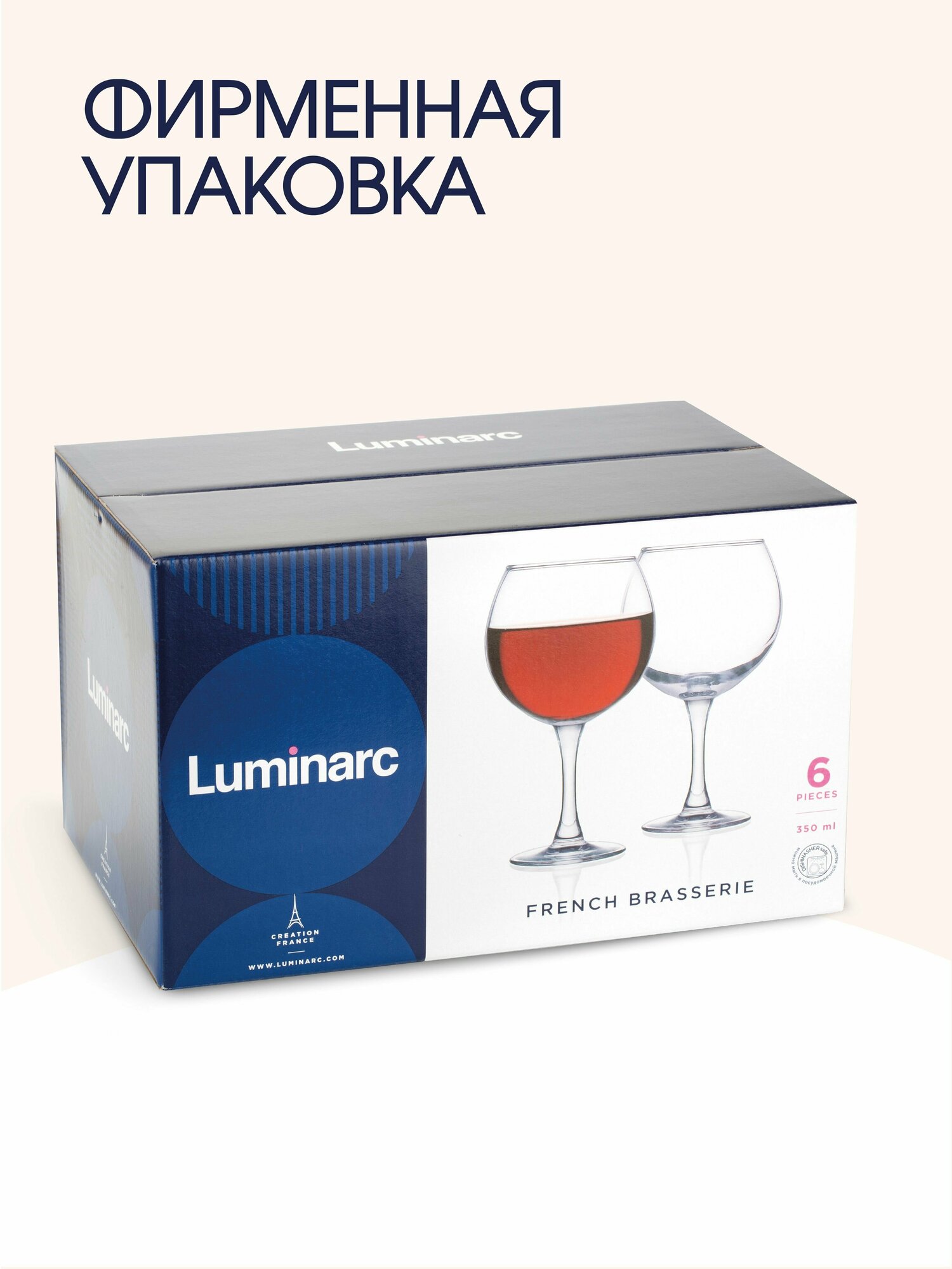 Купить Набор стеклянных бокалов для вина «Французский ресторанчик», 350 мл, 6 шт