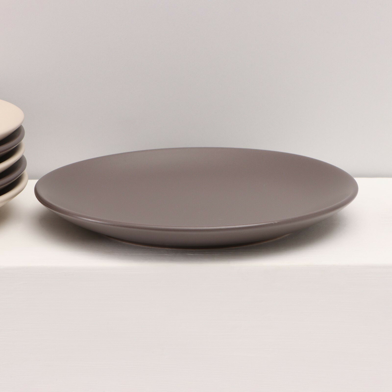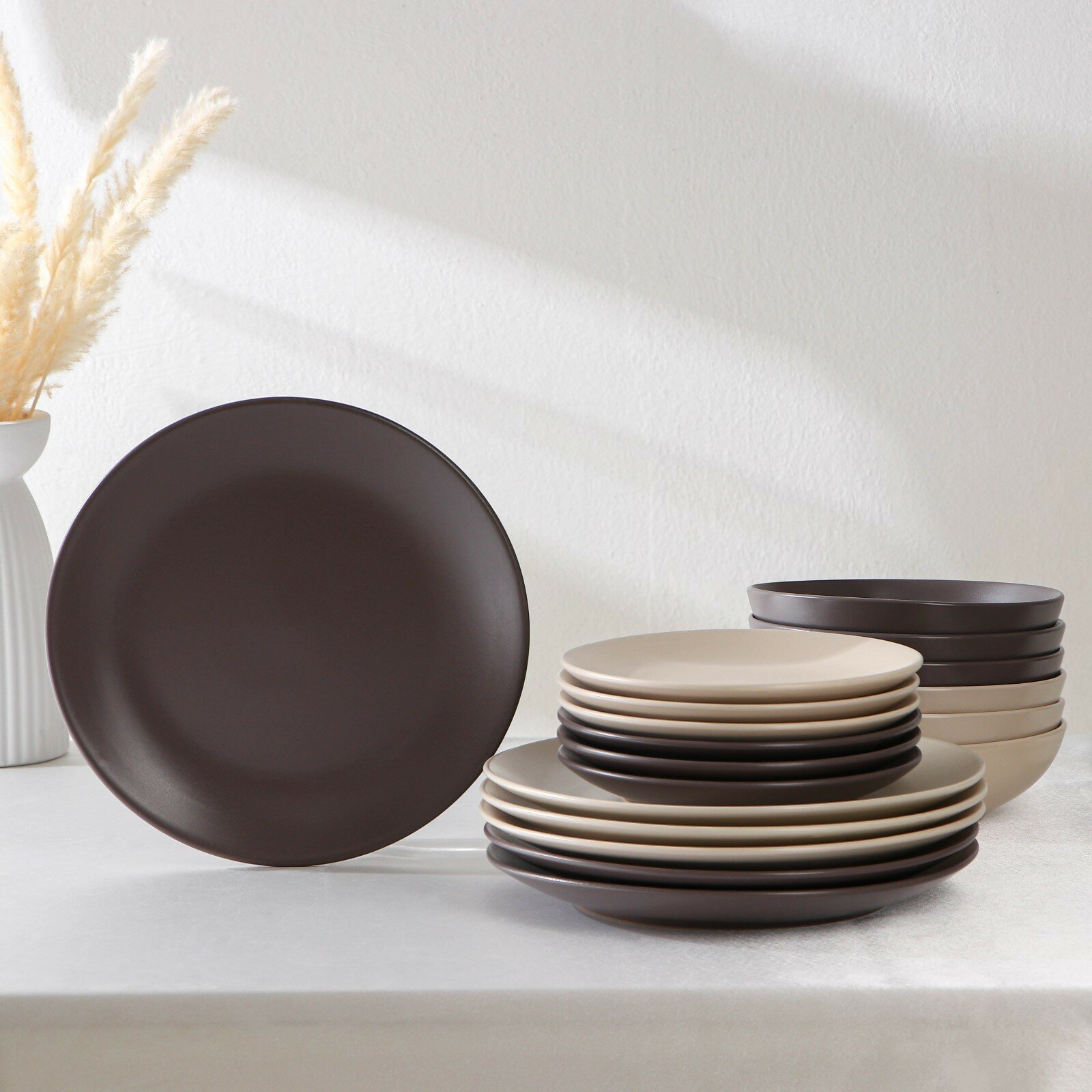 Доляна Набор тарелок керамических Доляна «Пастель», 18 предметов: 6 тарелок d=19 см, 6 тарелок d=27 см, 6 мисок d=19 см, цвет коричневый