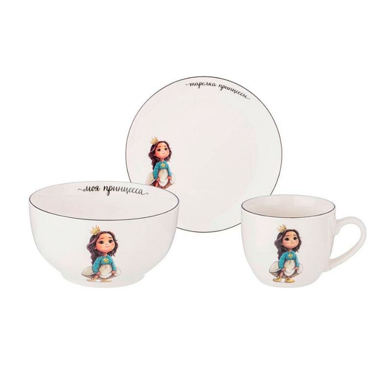 Набор детской посуды из фарфора Lefard "Моя Принцесса", 3 предмета : салатник 470 мл, тарелка 20 см, кружка 220 мл интересное:
