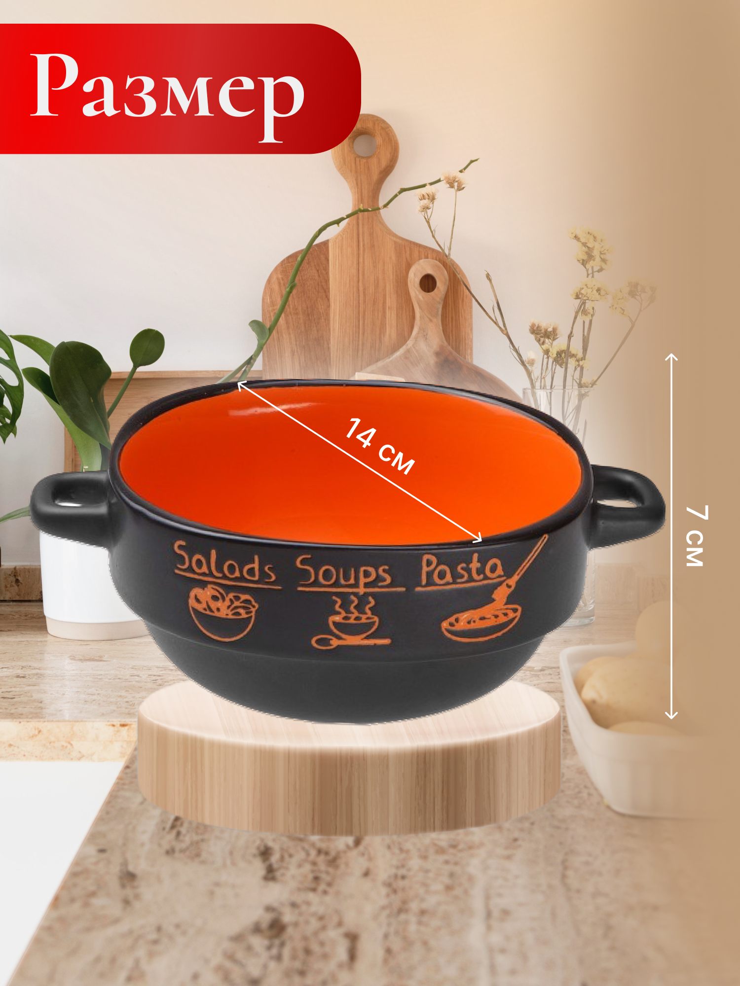 Супница керамическая PERFECTO LINEA Харчо черно-оранжевая 700 мл 14 см (18-416512)