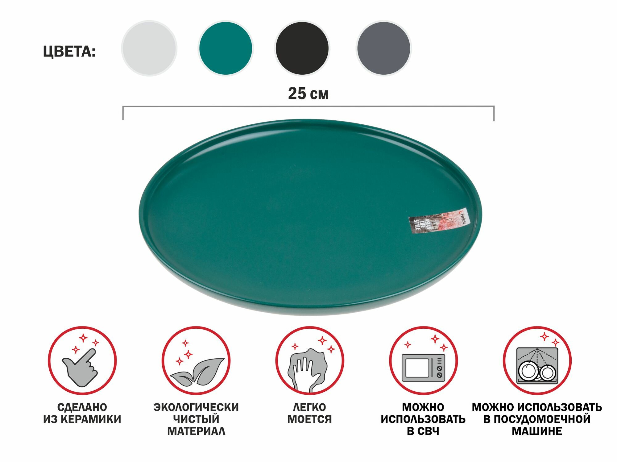 Тарелка обеденная керамическая, 25 см, серия ASIAN, зеленая, PERFECTO LINEA (17-132628)