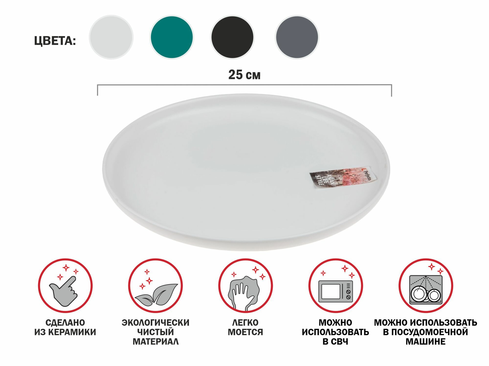 Тарелка обеденная керамическая, 25 см, серия ASIAN, белая, PERFECTO LINEA (17-112628)