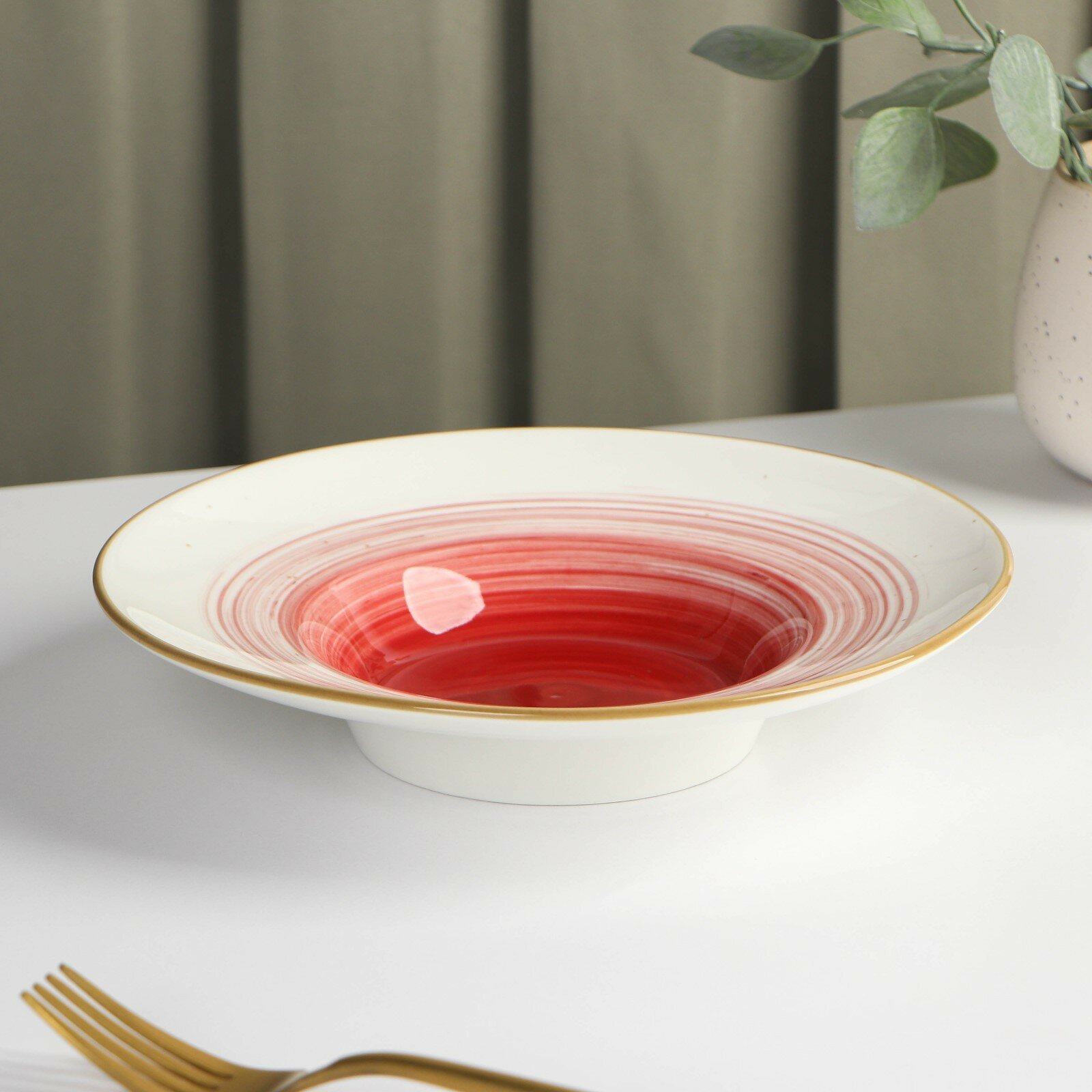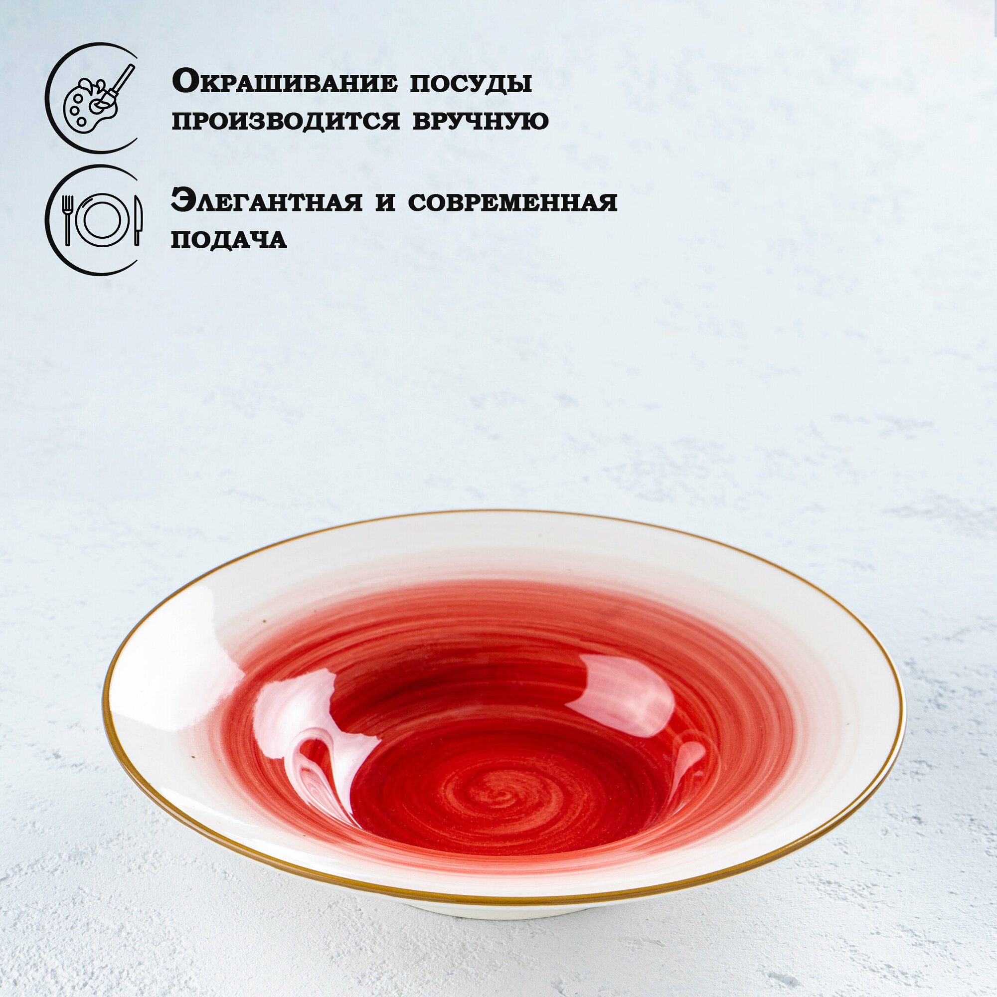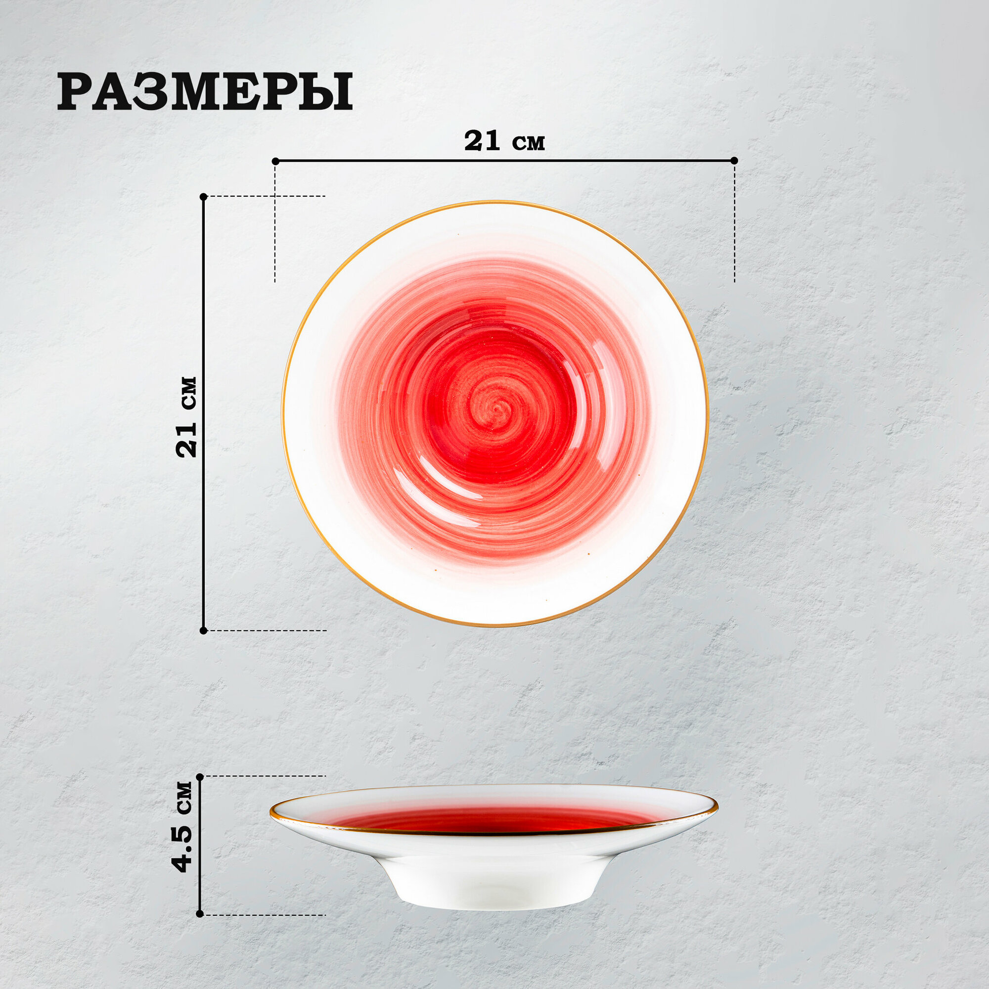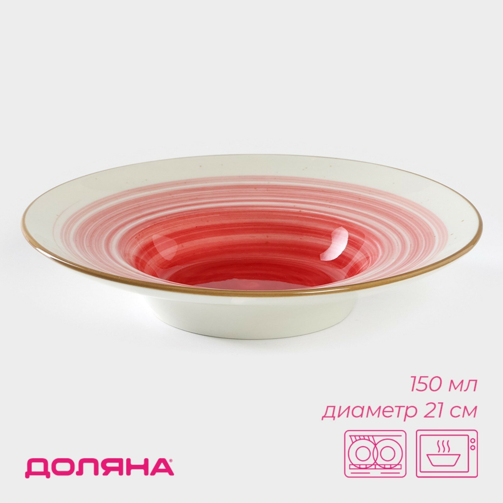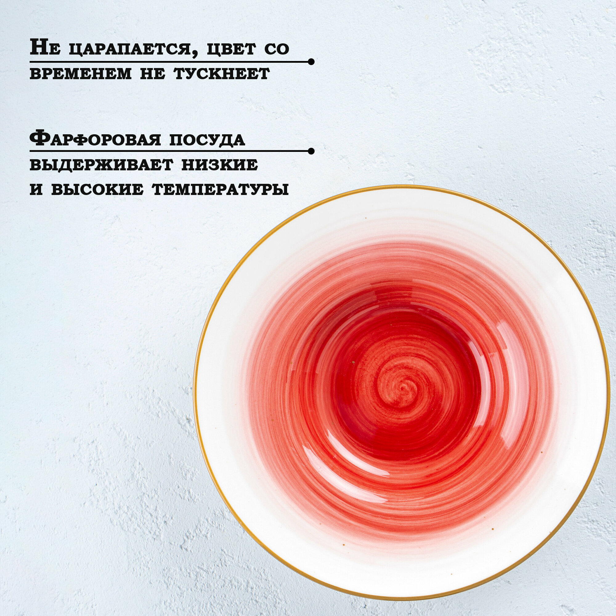 Купить Тарелка фарфоровая для пасты Доляна «Космос», 150 мл, d=21 см, цвет красный