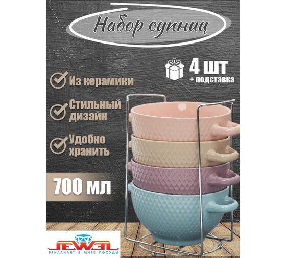 Ниже Вы можете прочитать отзывы на Набор бульонниц Jewel Аура-Ромбы 4 предмета на металлической подставке 700 мл ПС00125-06 ., ознакомится с подробными характеристиками, посмотреть интересные обзоры и фотографии на Набор бульонниц Jewel Аура-Ромбы 4 предмета на металлической подставке 700 мл ПС00125-06 ..