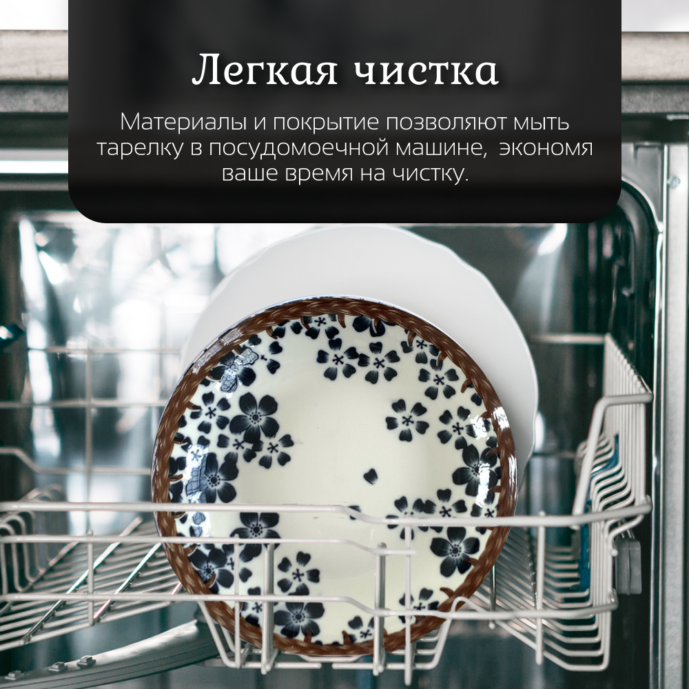 Тарелка обеденная керамическая для сервировки стола Homium, Japanese Collection, Очарование, цвет белый/синий, D20см