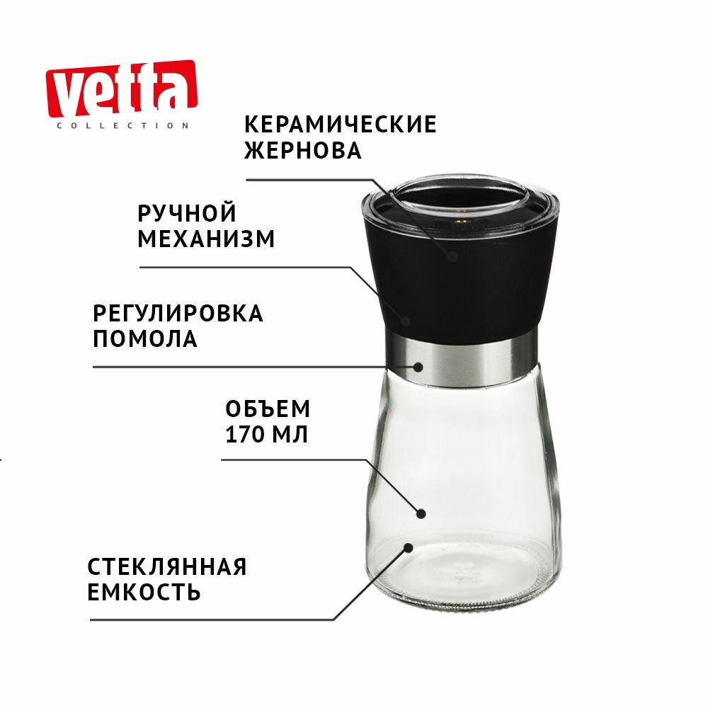 VETTA Мельница для специй ручная, для соли и перца, стекло/пластик
