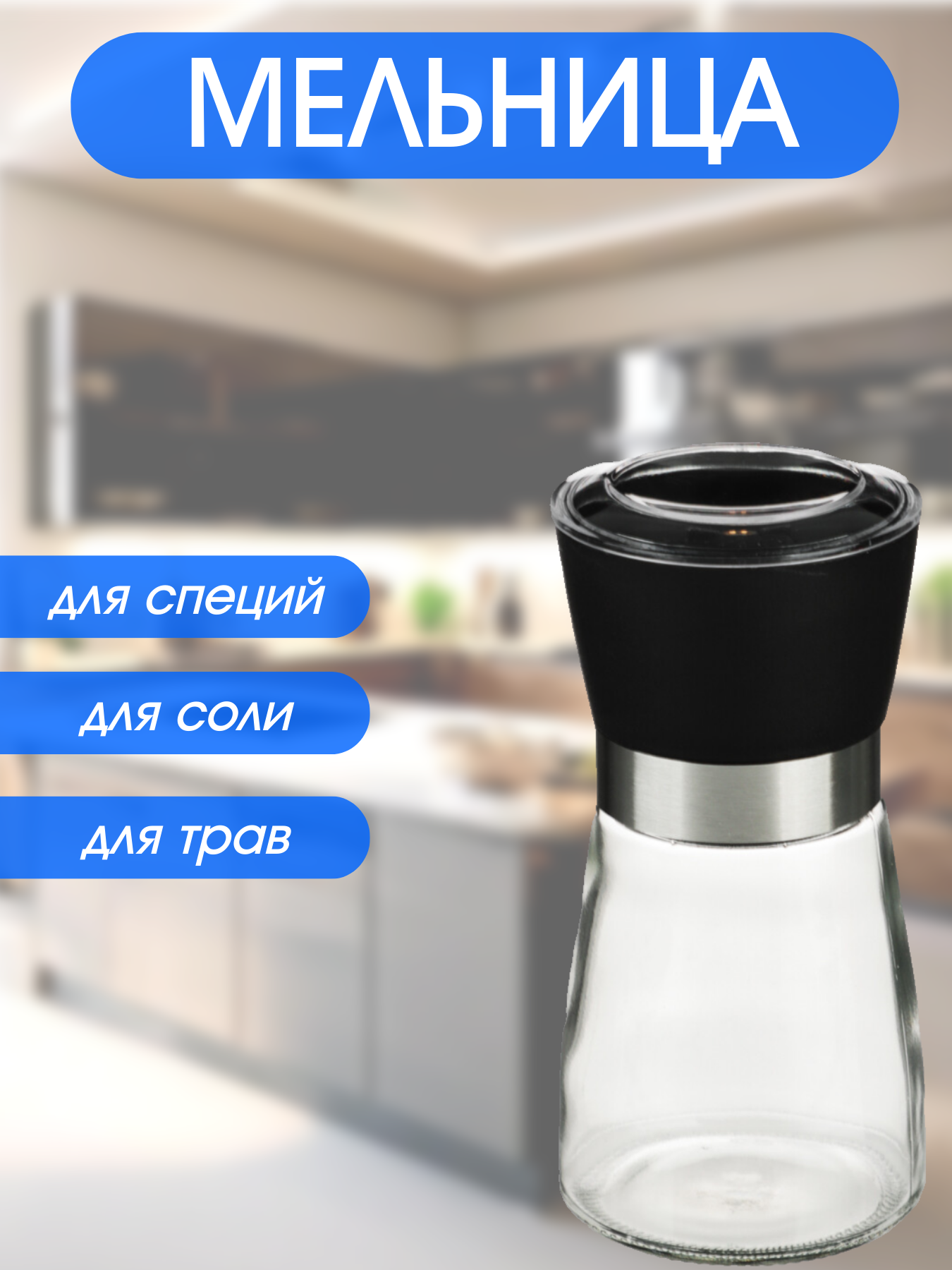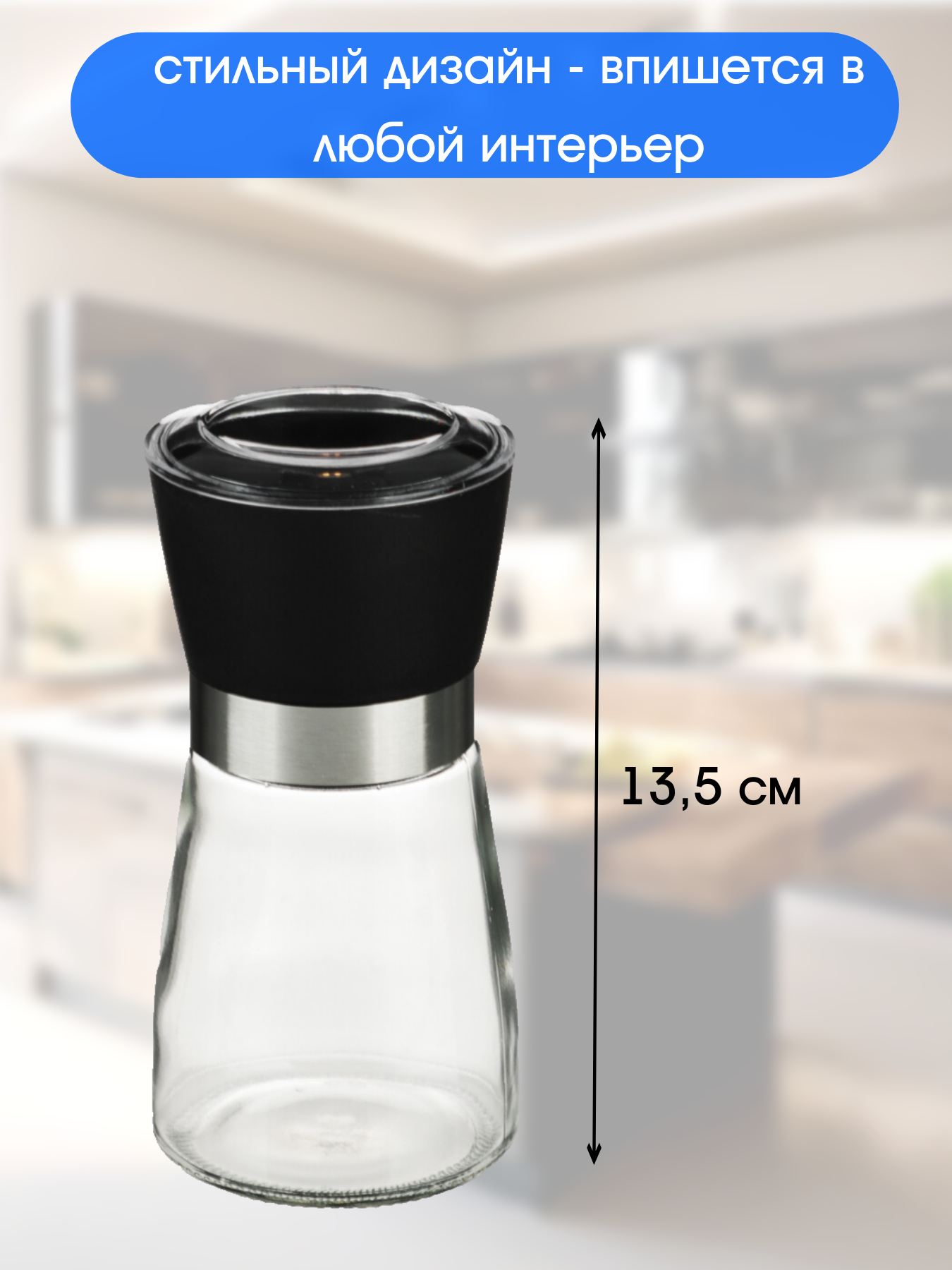 Мельница для специй ручная, для соли и перца, стекло/пластик интересное: