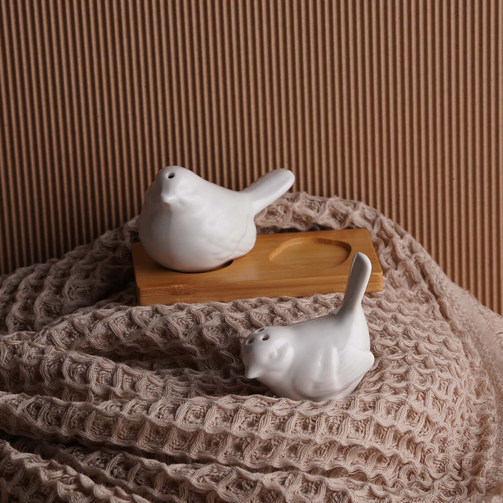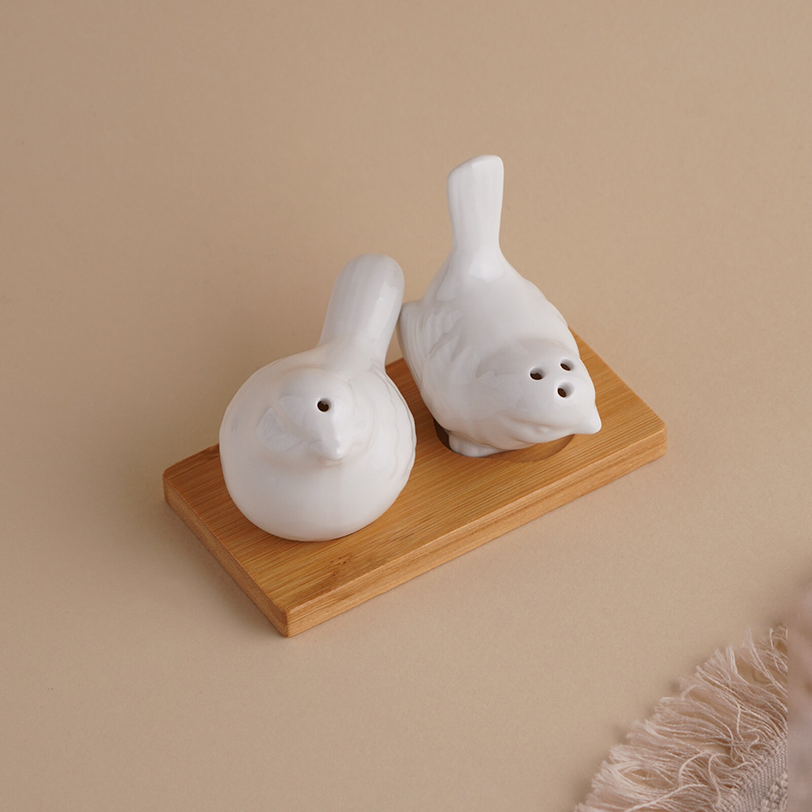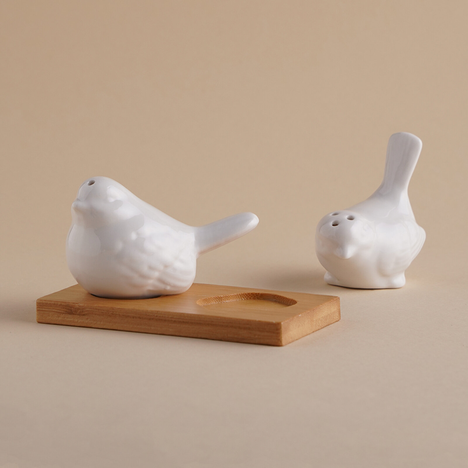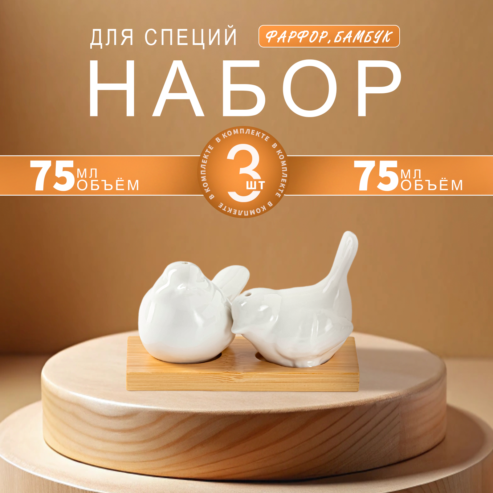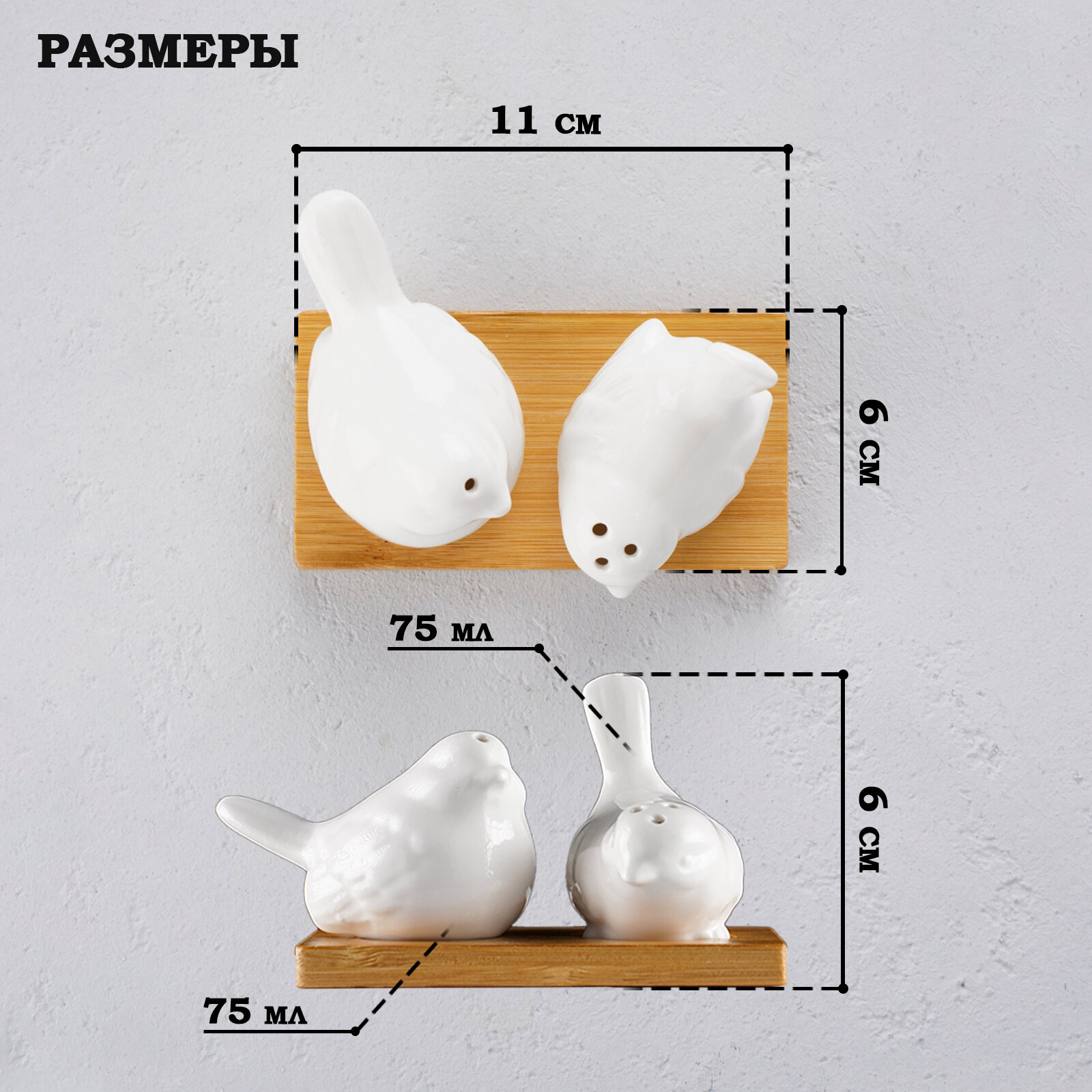 Набор для специй на деревянной подставке BellaTenero "Ласточкины гнёзда", 2 предмета, цвет белый, фарфор