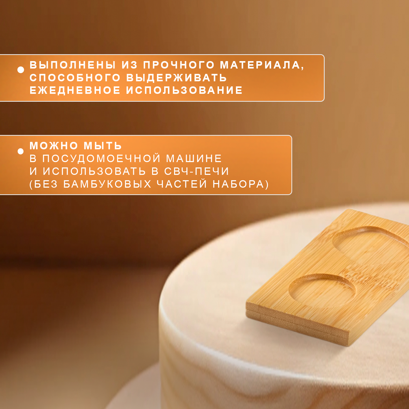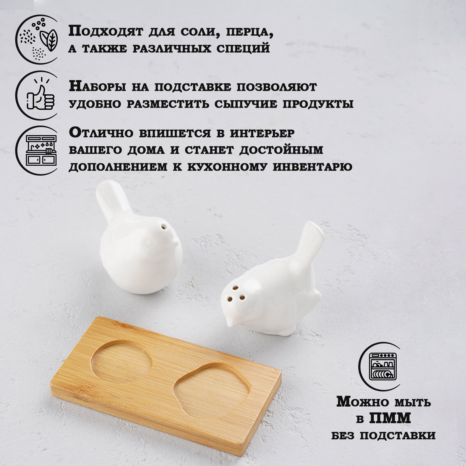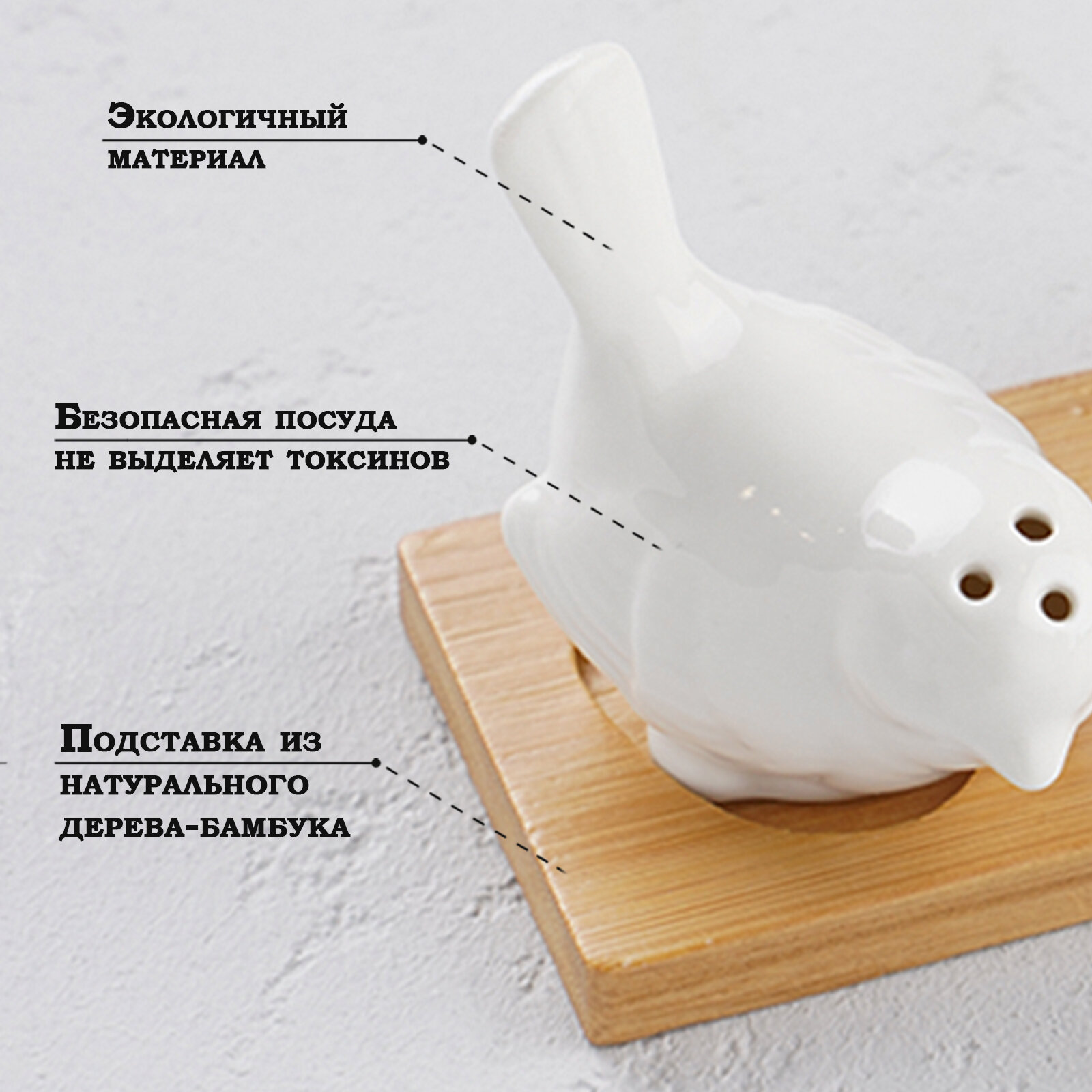Солонка и перечница фарфоровая на бамбуковой подставке "Доляна" набор для специй, 40 мл