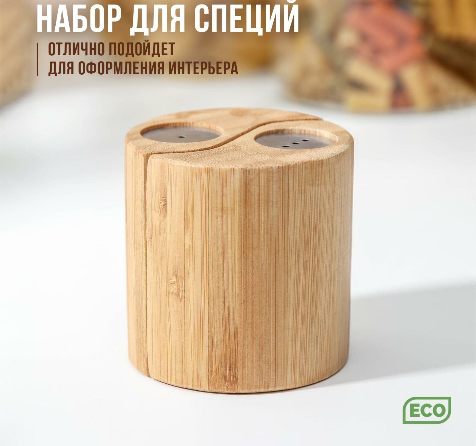 Набор для специй, 7*7см, 2 шт, солонка и перечница, бамбук интересное:
